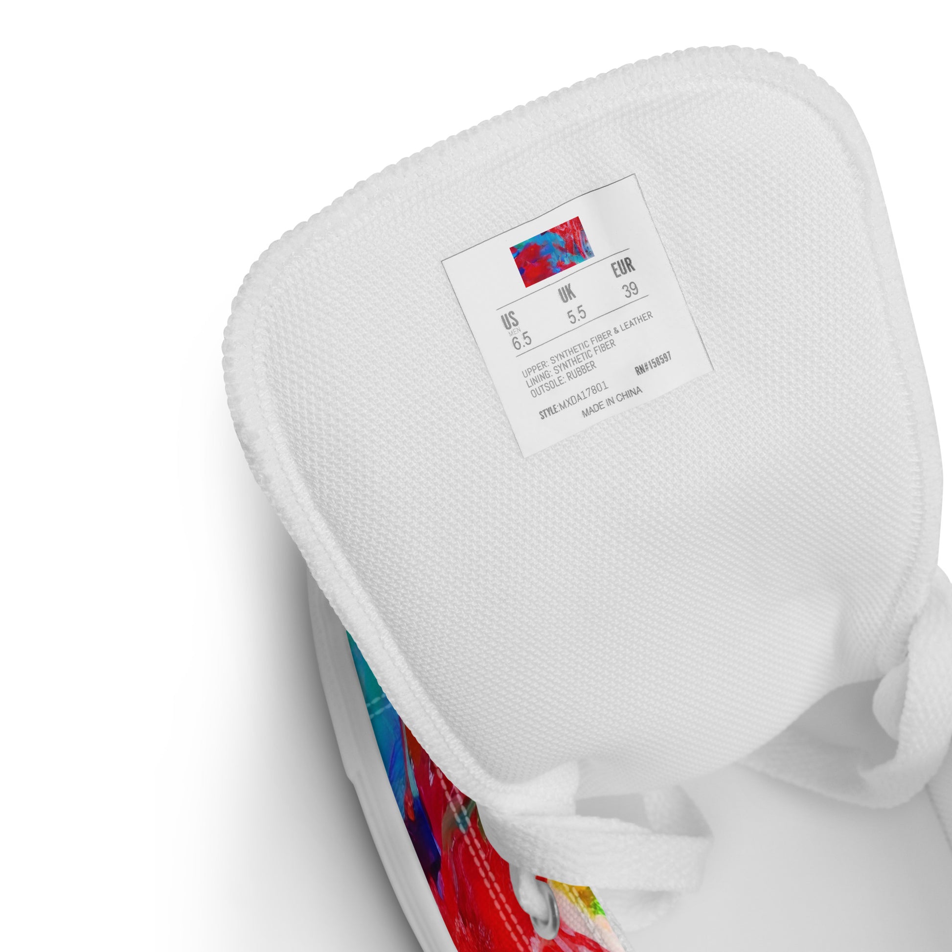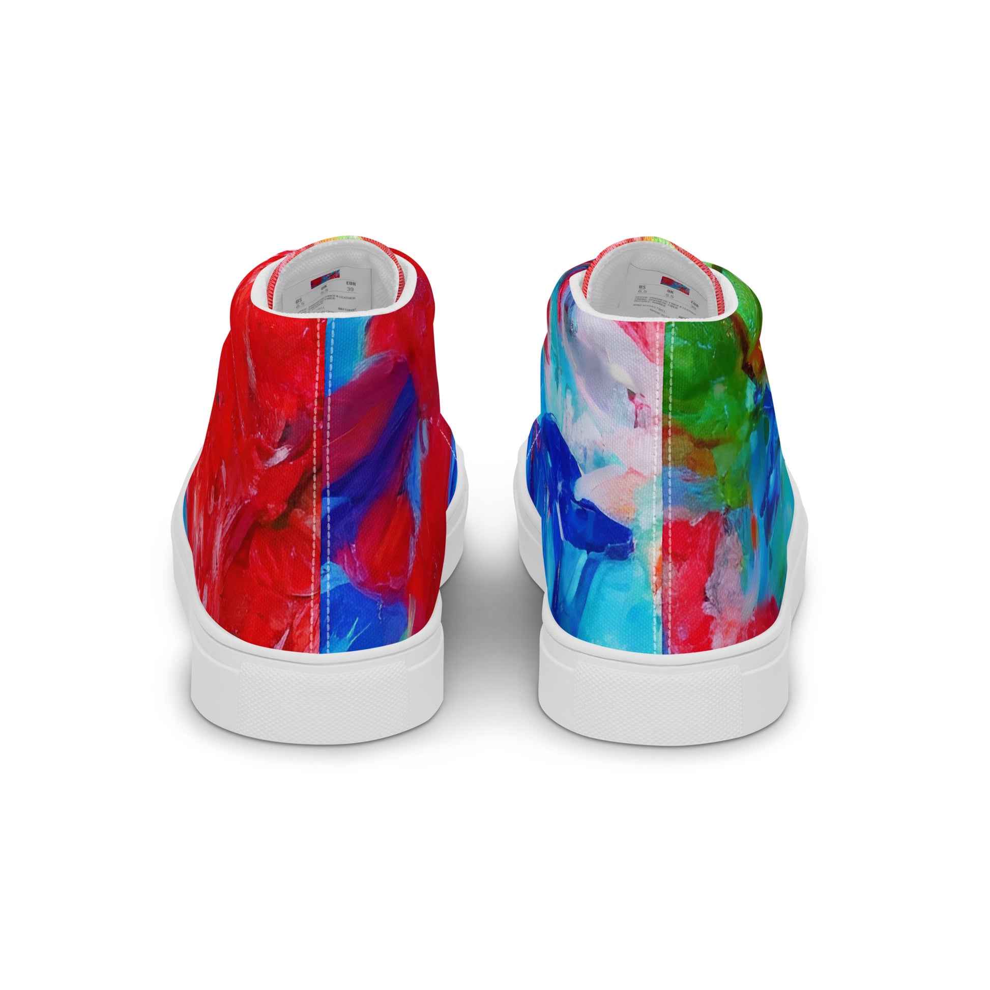 Unleash your creative spirit with our "Eclectic Breeze" Women's High Top Canvas Shoes! This vibrant design bursts with swirling reds, blues, and greens, capturing the essence of artistic passion and adventure. Perfect for summer festivals or art gallery openings, these shoes not only make a striking statement but also offer unparalleled comfort and durability. Step into a world of color and express your unique style with every stride!