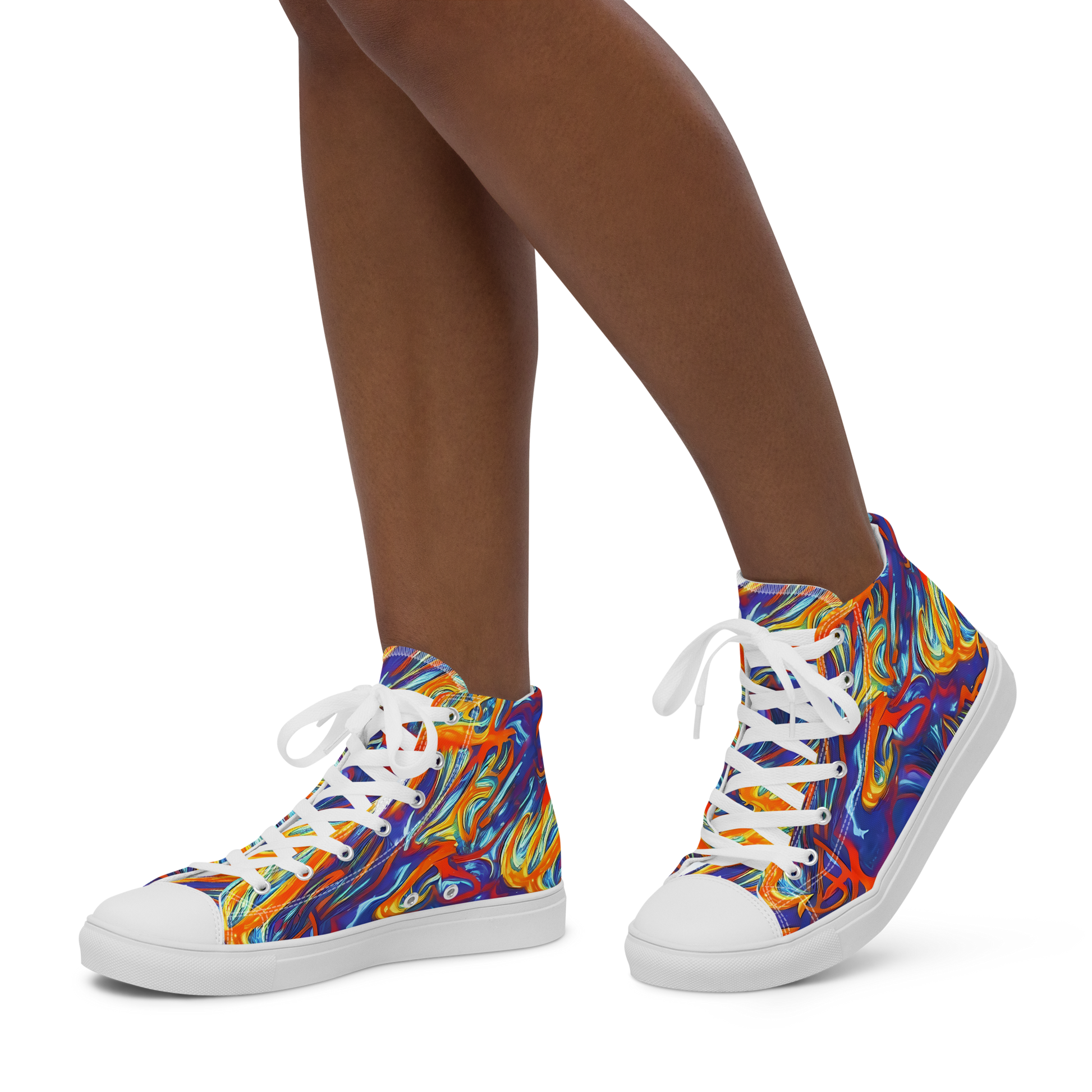 Unleash your inner cosmic artist with our Women's High Top Canvas Shoes, featuring the mesmerizing "Galactic Ember" pattern. This design bursts with vibrant swirls of fiery oranges, electric blues, and deep purples, creating an energetic and dynamic visual that captures the essence of abstract cosmic phenomena. Perfect for making a bold statement at summer festivals, art gallery openings, or any event where you want to stand out, these shoes embody a free-spirited and avant-garde vibe.