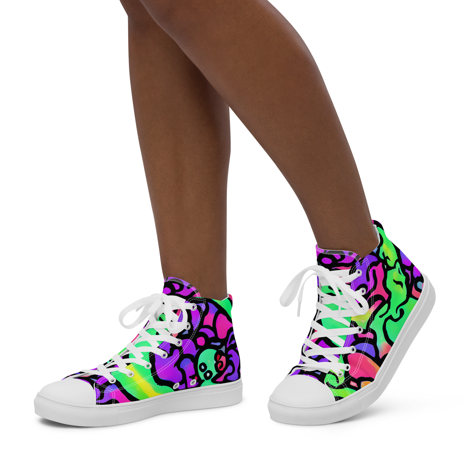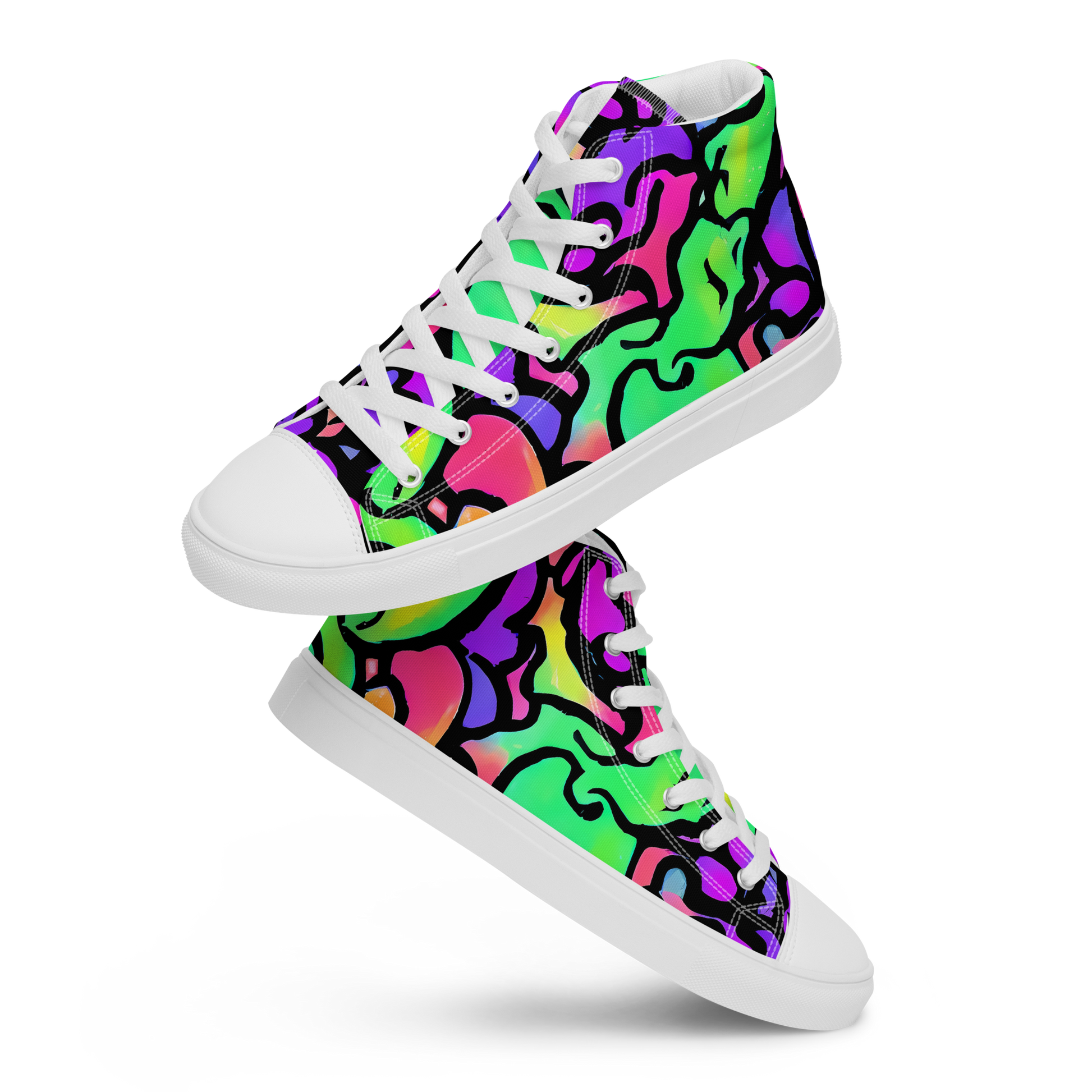 Embrace the electric essence of art with our High Top Canvas Shoes, wrapped in the vibrant swirls of neon green, pink, and purple! Each step you take becomes a bold statement of artistic confidence and adventure, perfect for standing out at creative gatherings or cultural events. These shoes are a testament to individuality, designed for those who dare to express themselves in every season.