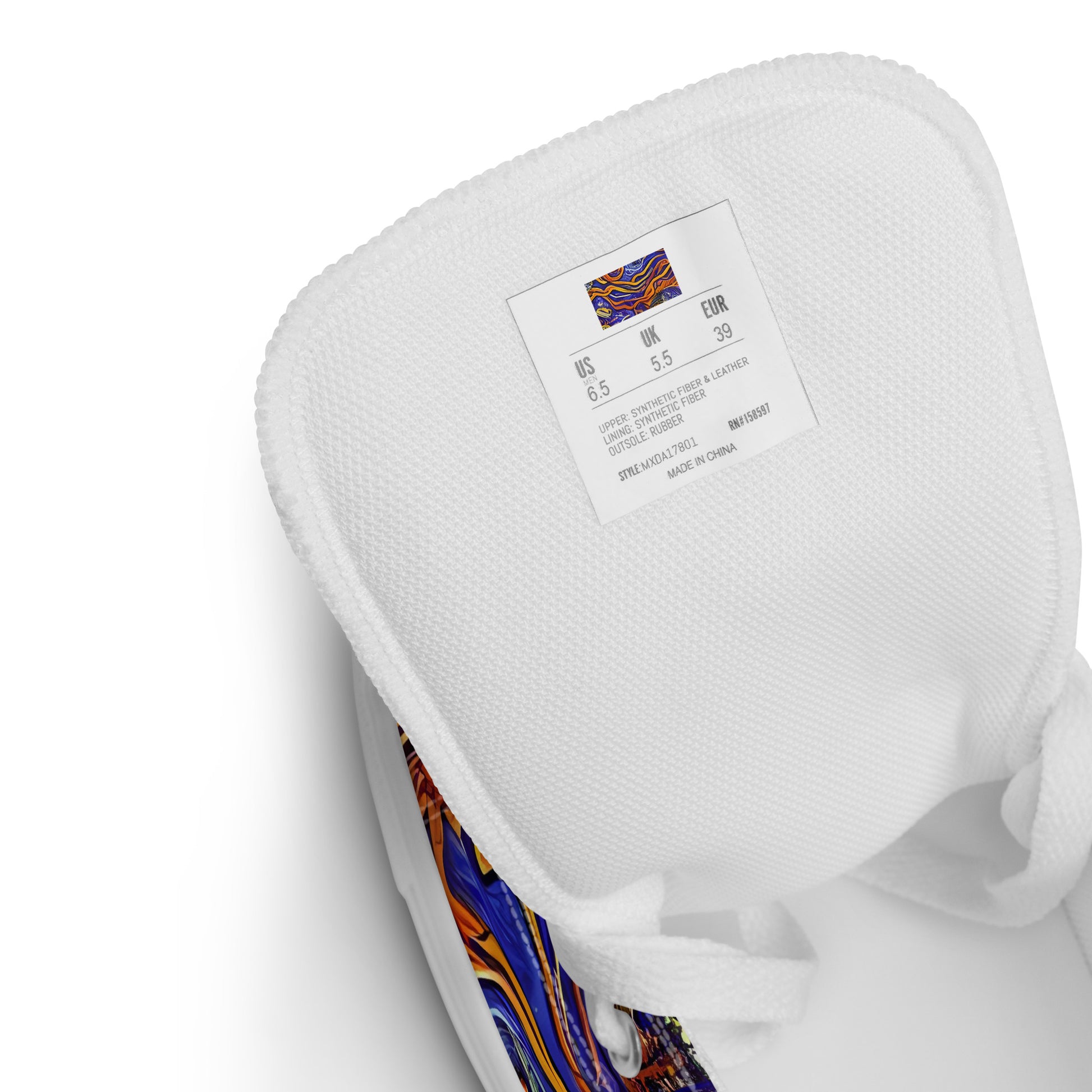 Unleash your inner artist with our Women's High Top Canvas Shoes, adorned with the mesmerizing "Mantegna Swirl" pattern. This vibrant tapestry of deep blues and fiery oranges, intertwined with fluid, abstract shapes, captures the essence of cosmic dynamism and Renaissance grandeur, making these shoes a statement piece for the daring individual. Whether you're heading to an avant-garde event or an artistic gathering, these high tops will elevate your style while providing unmatched comfort.