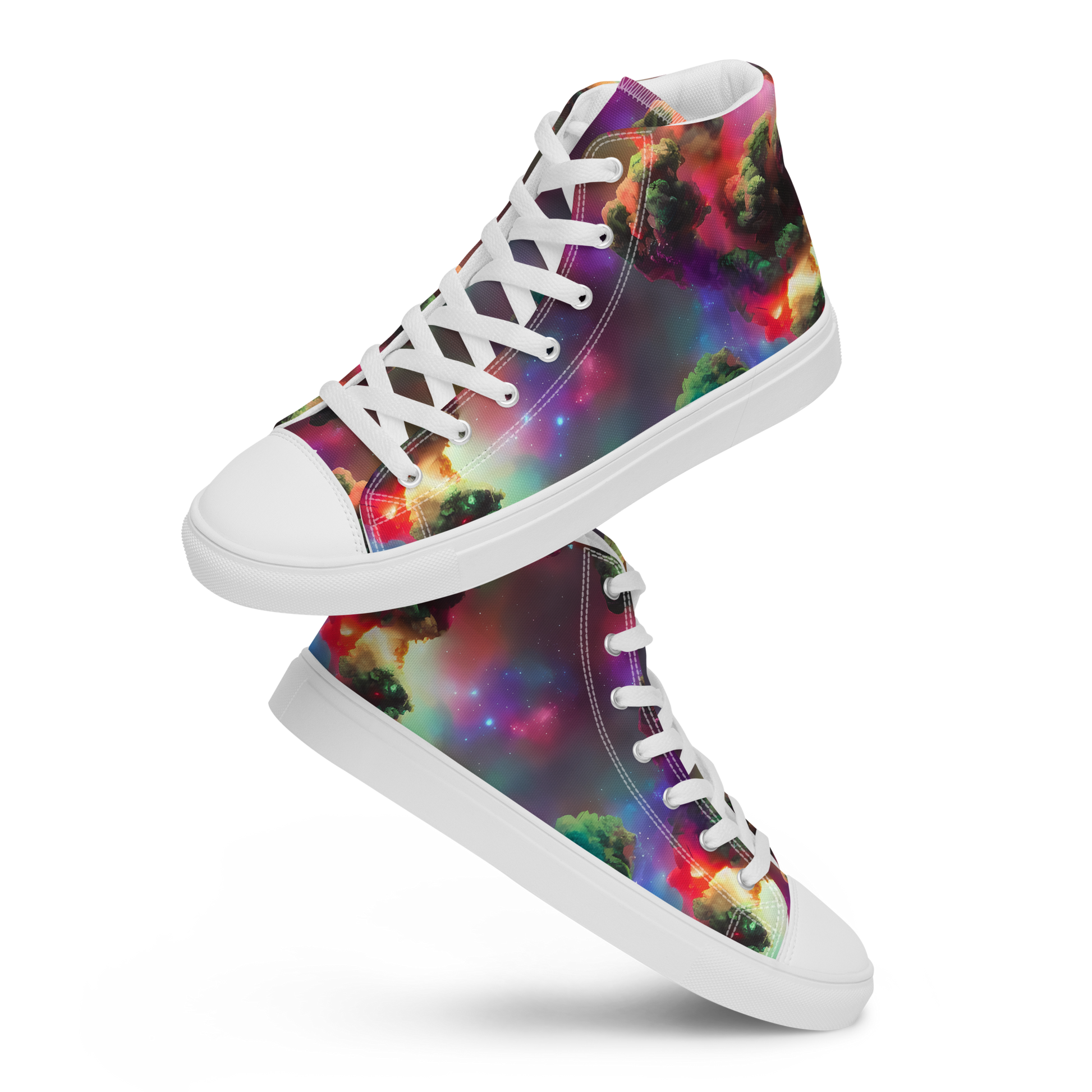 Unleash your inner cosmic explorer with our custom-designed Women's High Top Canvas Shoes! Featuring a mesmerizing blend of purples, blues, pinks, and greens, these shoes capture the essence of dreamy otherworldliness with their swirling, cloud-like forms and starry specks. Perfect for music festivals, night-time events, or any artistic gathering, these shoes are made for free spirits who love to stand out. Crafted for both durability and style, they promise unparalleled comfort with a breathable lining, soft insole, and padded collar. Step into a universe of vibrant personality and cosmic connection—order your pair today!