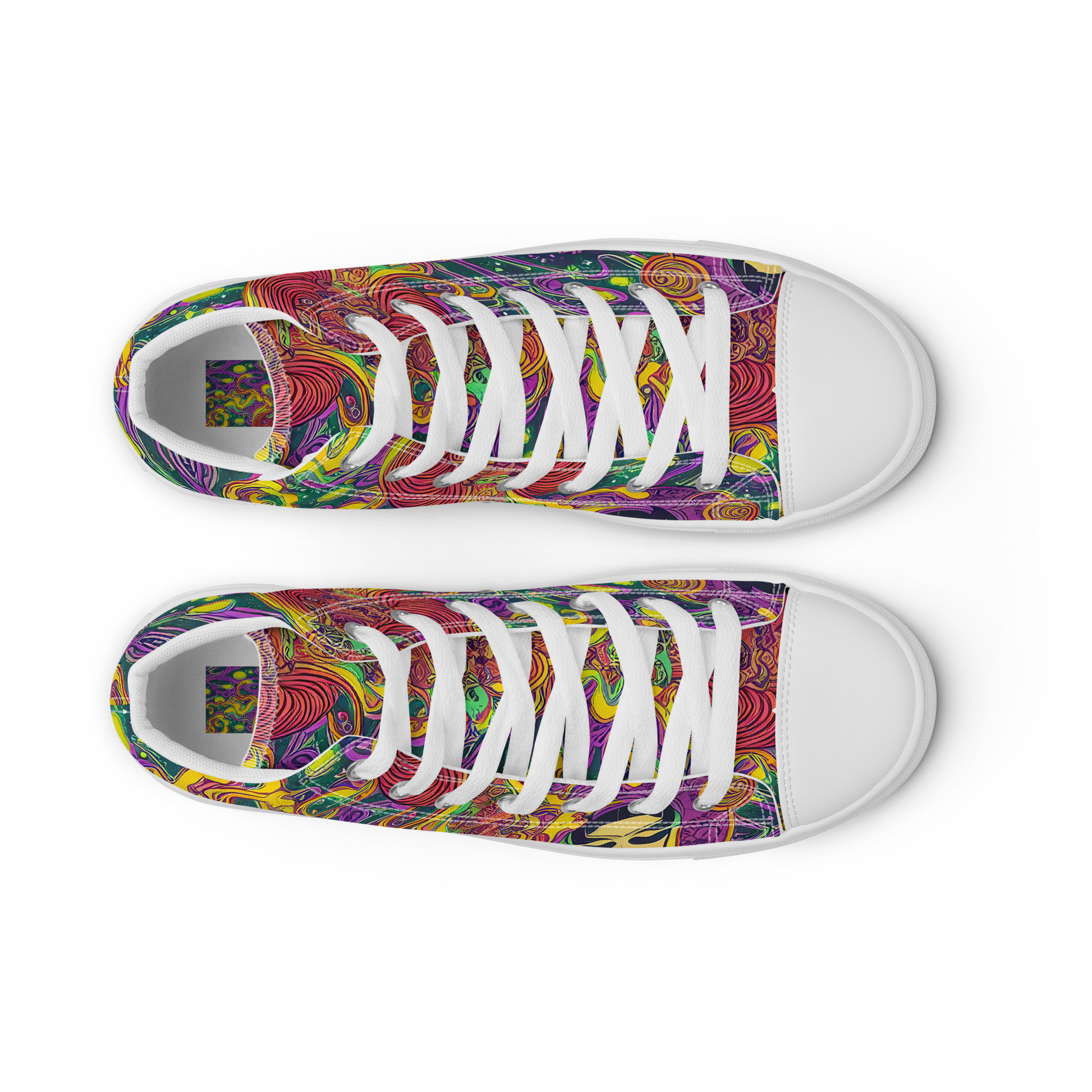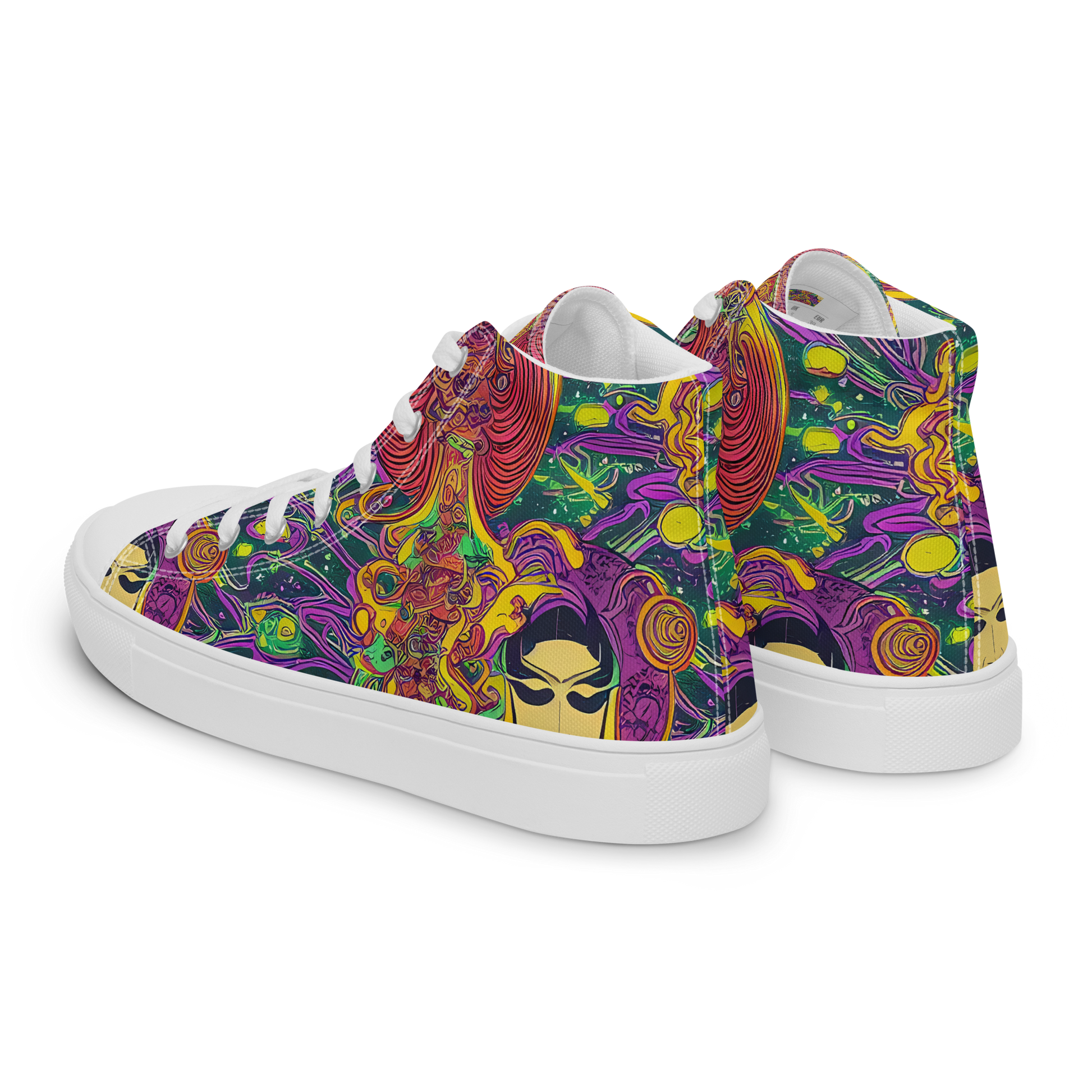 Unleash your adventurous spirit with our "Odyssey in Color" Women's High Top Canvas Shoes! This eye-catching design features a vibrant tapestry of swirling purples, electric yellows, and deep greens, interwoven with abstract cosmic forms and enigmatic faces. Perfect for bold personalities, these shoes are not just footwear; they're a statement. Whether you're hitting a music festival, exploring art galleries, or strolling through eclectic urban streets, step into a world of color and creativity while enjoying unparalleled comfort.