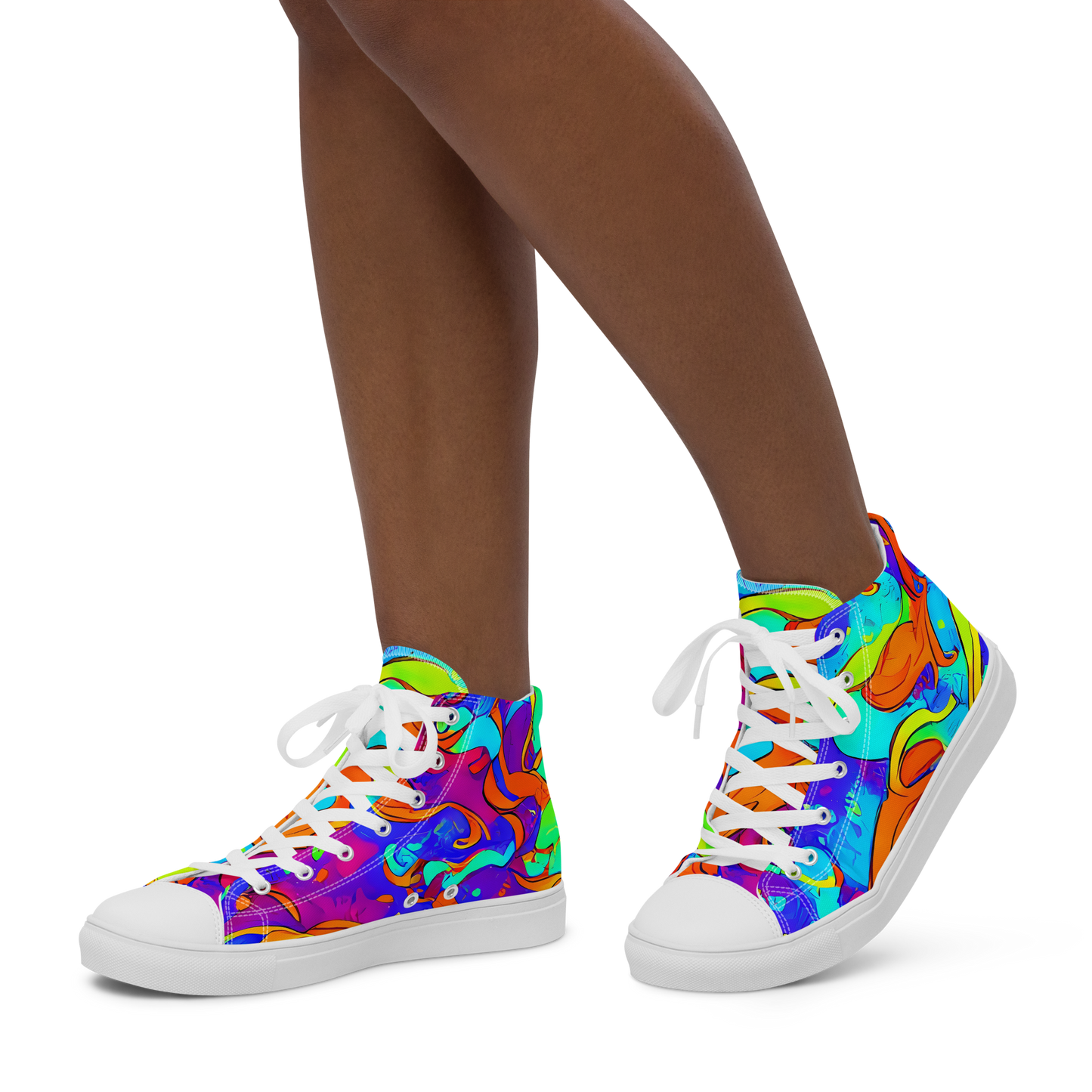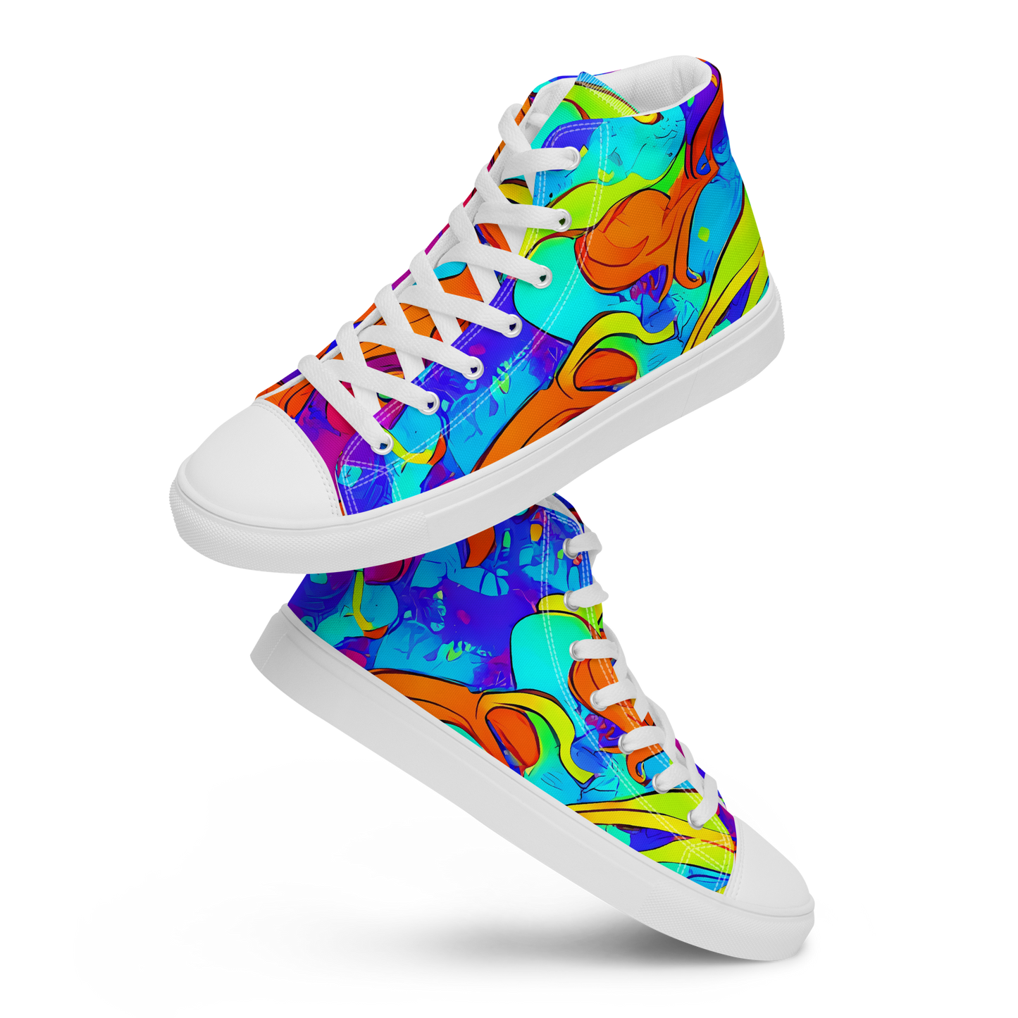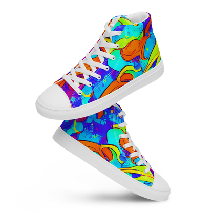 Ignite your wardrobe with our exclusive High Top Canvas Shoes, wrapped in the vibrant energy of our latest design. Envelop your feet in a canvas of artistry, where fiery orange and sunny yellow swirls pirouette across a serene blue canvas, creating a watercolor symphony that captures the essence of passion and creativity. Perfect for those who live boldly and appreciate the finer strokes of art, these shoes are a wearable masterpiece that will turn heads at every corner.