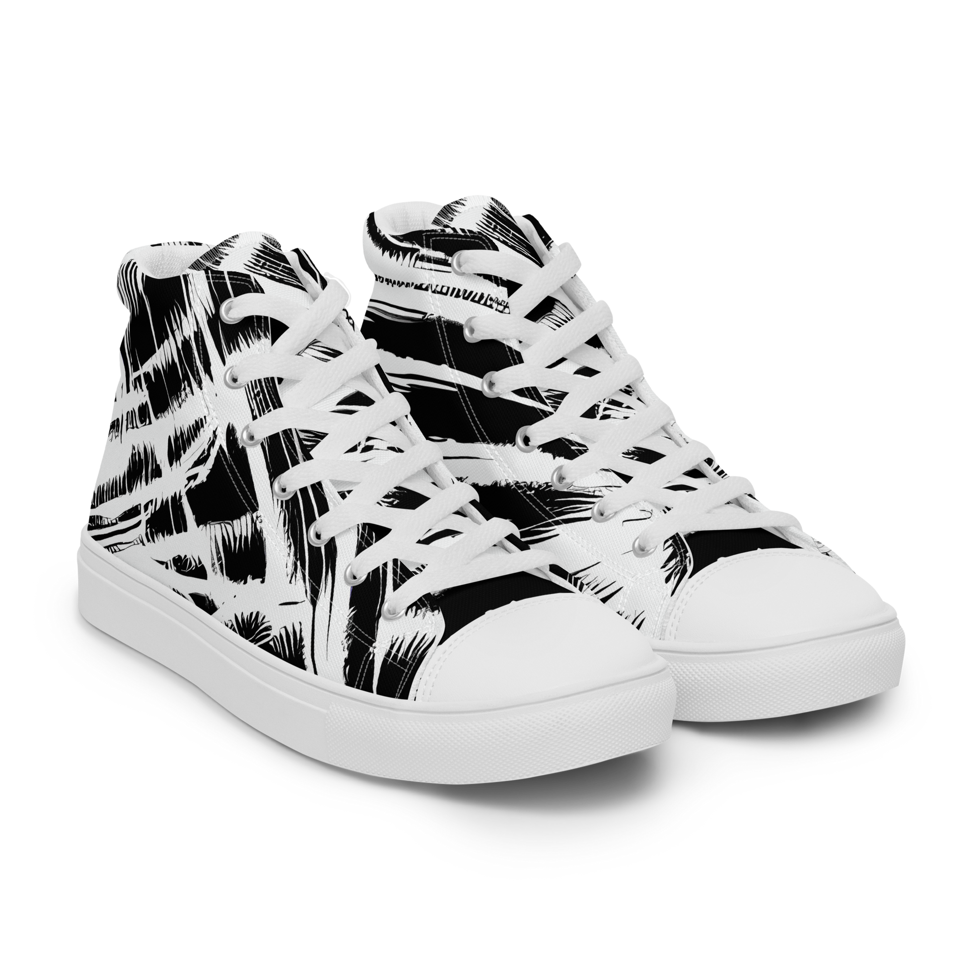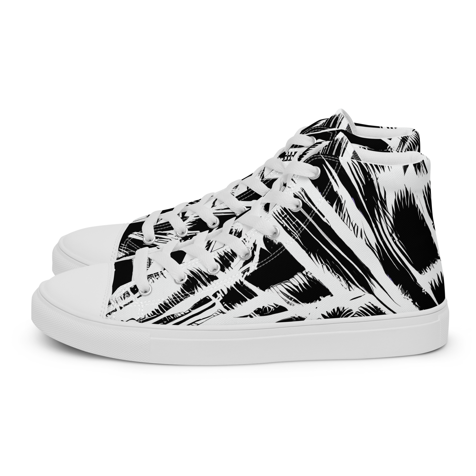 Unleash your inner storm with our "Silent Thunder" Women's High Top Canvas Shoes! This striking design features a bold interplay of black and white, capturing the raw energy of a tempest in abstract lines and dynamic bursts. Perfect for the daring trendsetter, these shoes are not just footwear; they are a statement piece for art galleries, music festivals, and everything in between. Step into a world where style meets comfort and make every stride count!