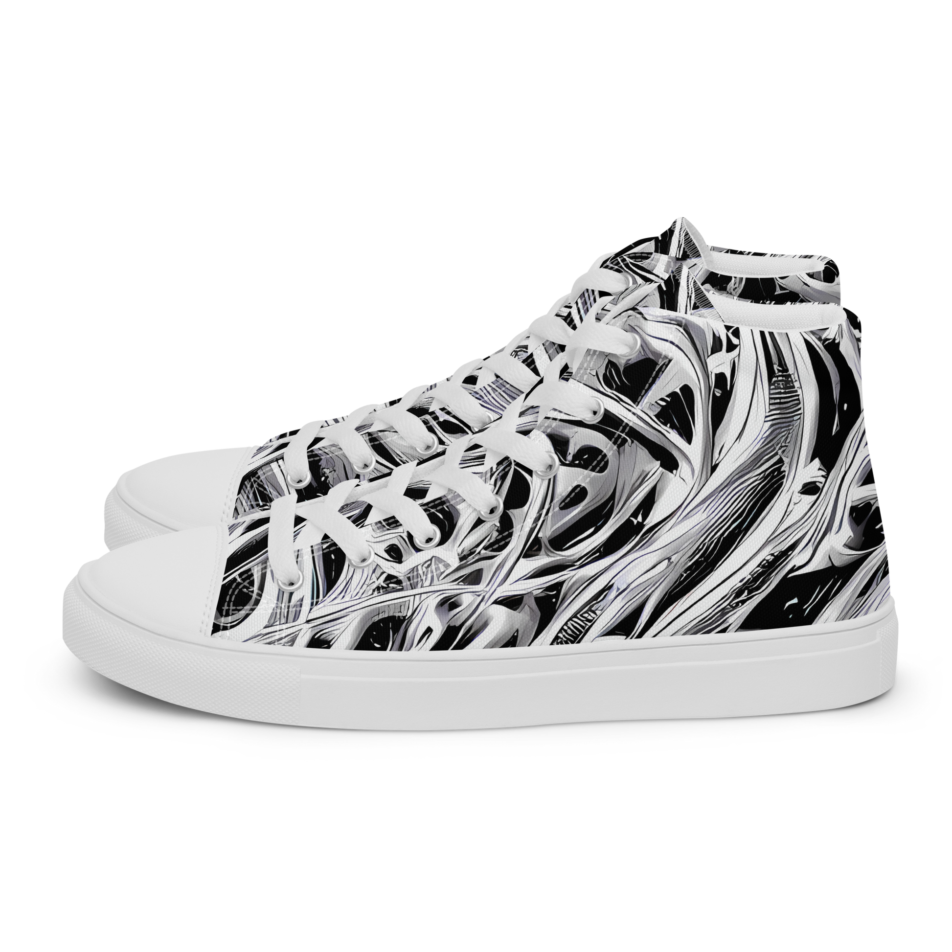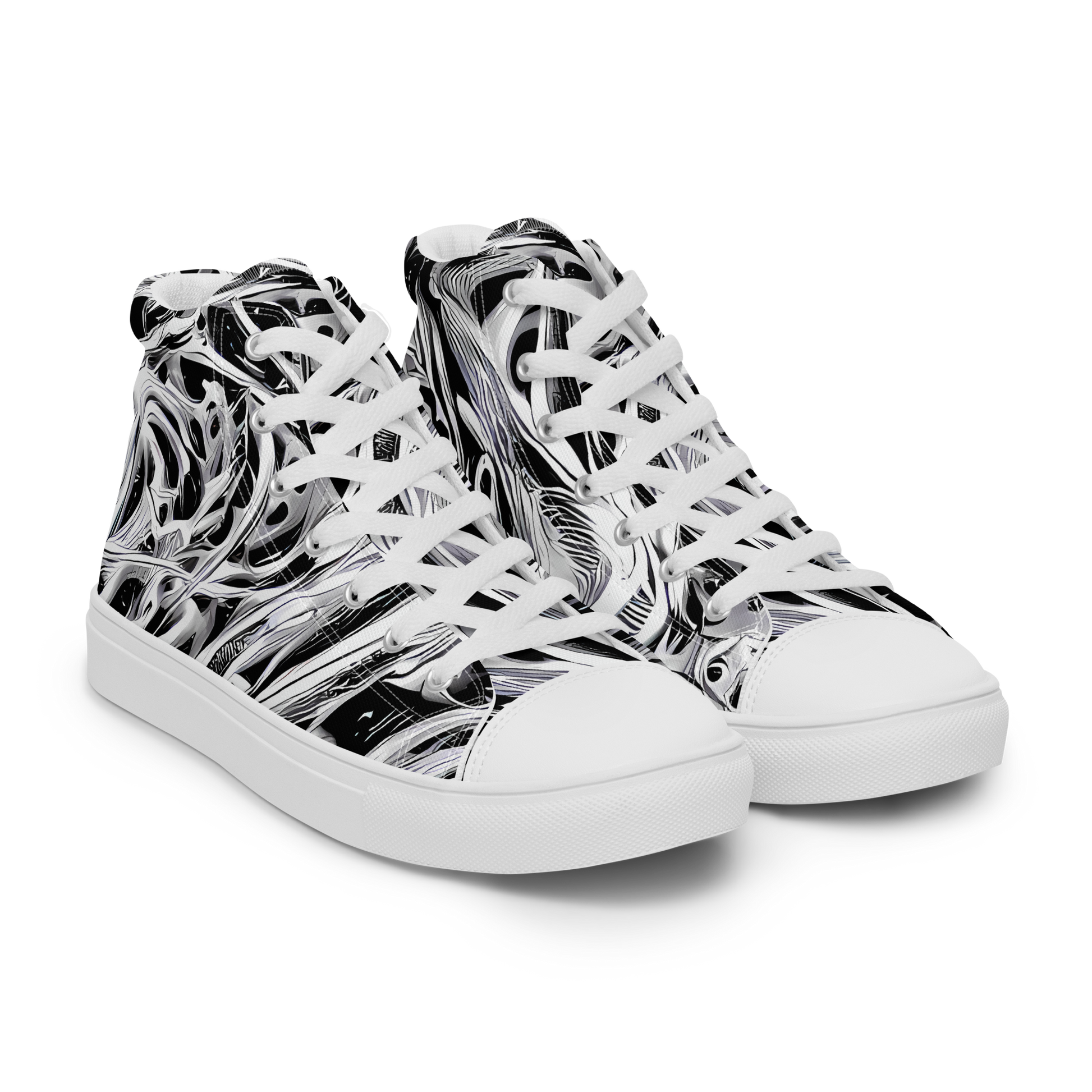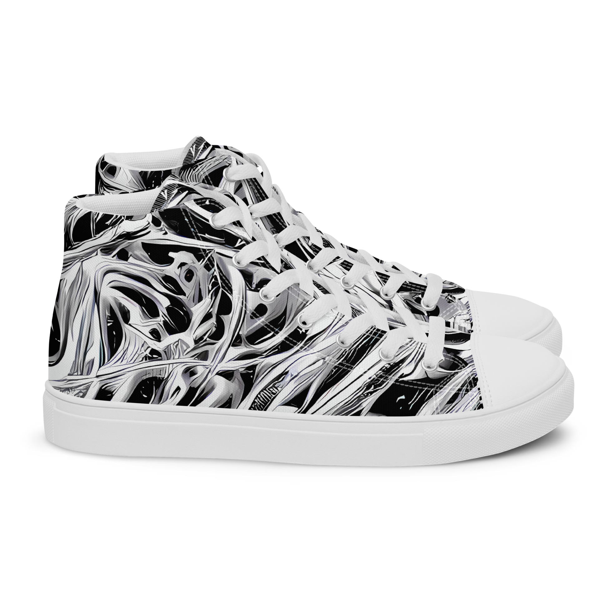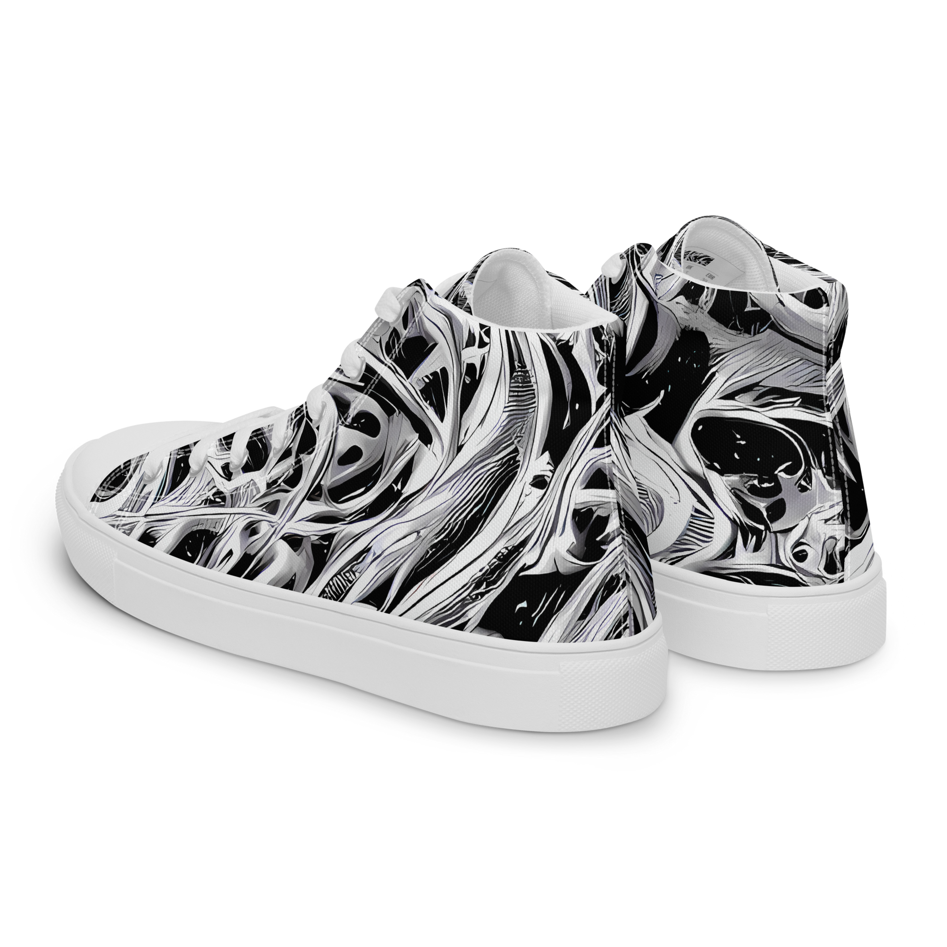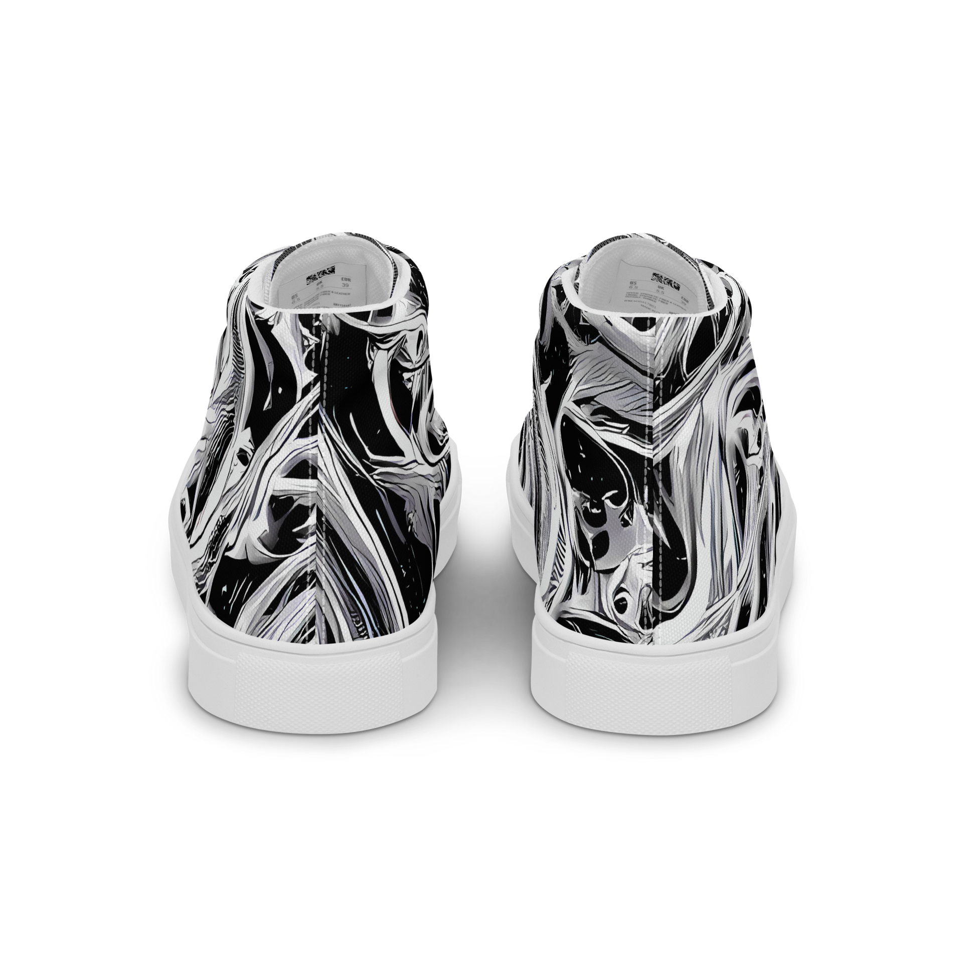 Unleash your inner artist with our custom-designed High Top Canvas Shoes featuring the captivating "Silver Shadows" pattern. This striking design blends swirling silver and black forms, creating a sense of movement and mystery that will elevate your style at any evening event or art gallery opening. With a unique blend of durability and comfort, these shoes are perfect for those who dare to stand out while enjoying every step in chic sophistication.
