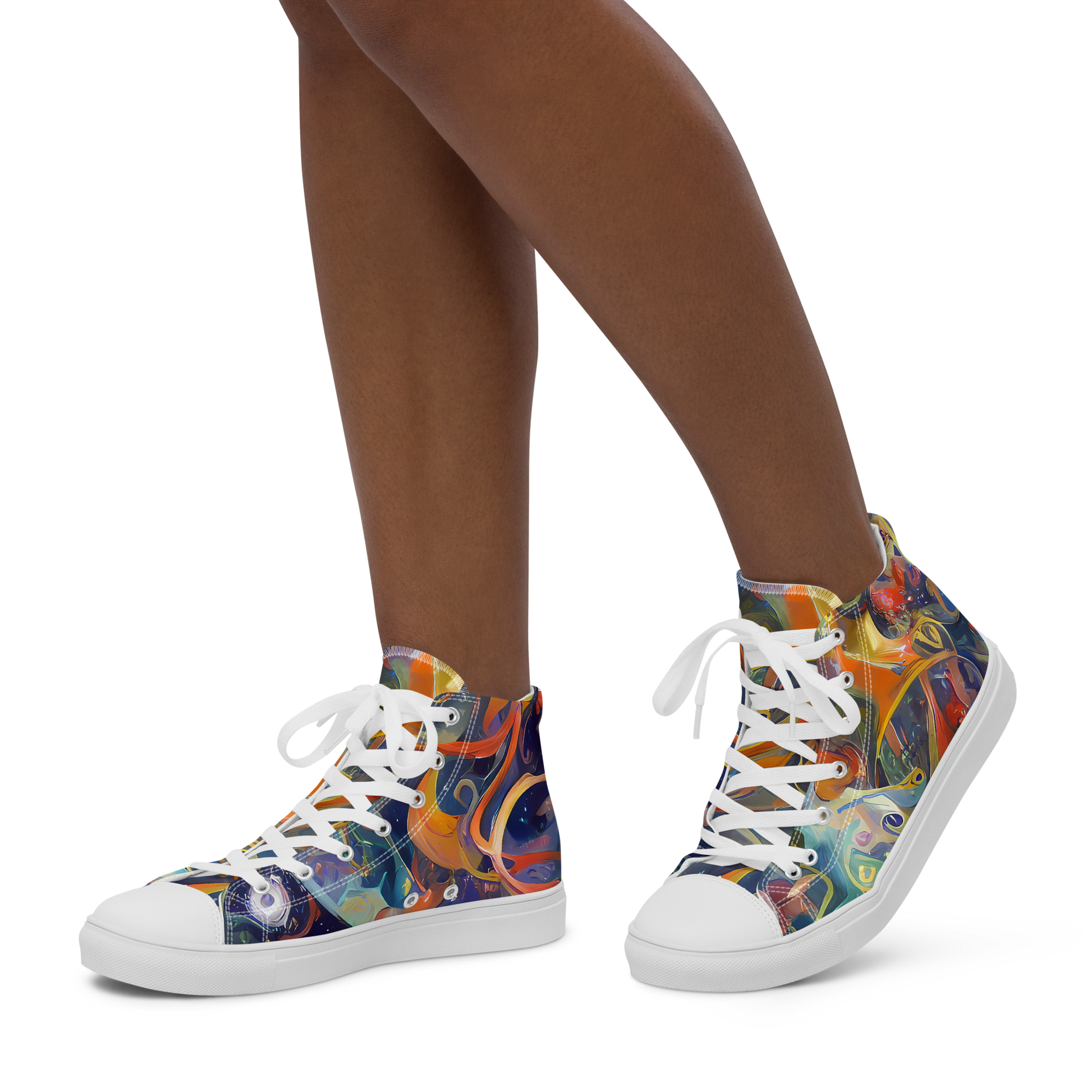 Envelop your feet in the artistry of our "Spectral Swathe" High Top Canvas Shoes, a wearable masterpiece that dances with the vibrant energy of a painter's palette. Inspired by the expressive strokes of Cecily Brown and the enchanting narratives of Peter De Seve, these shoes boast a dreamlike pattern with azure, gold, and fiery orange hues that come alive with every step. Perfect for the creative soul who's not afraid to stand out at art exhibitions or summer festivities, these shoes are a testament to boldness and individuality.