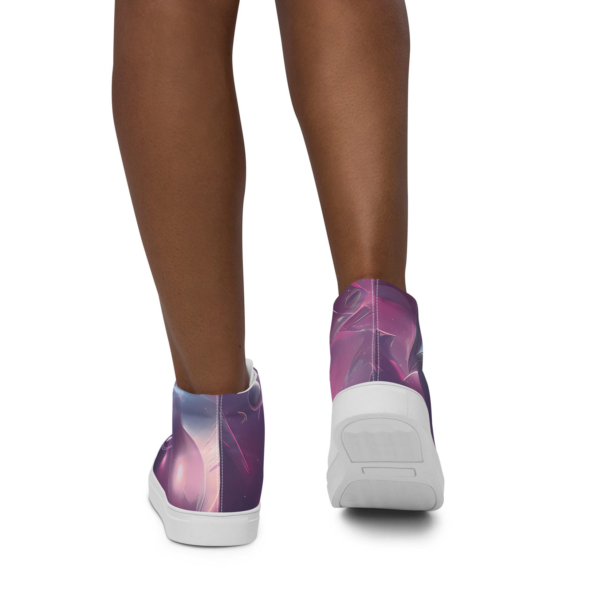 Embrace a touch of the cosmos with our High Top Canvas Shoes, draped in a pattern that dances with iridescent purples and pinks, and shimmers with deep blues reminiscent of a celestial dreamscape. These shoes are your ticket to a fantastical journey, offering both a bold fashion statement and a whisper of mystery for those nights out or creative gatherings. Wrap your feet in otherworldly elegance and stride into the cooler seasons with a design meant for the imaginative and the bold.