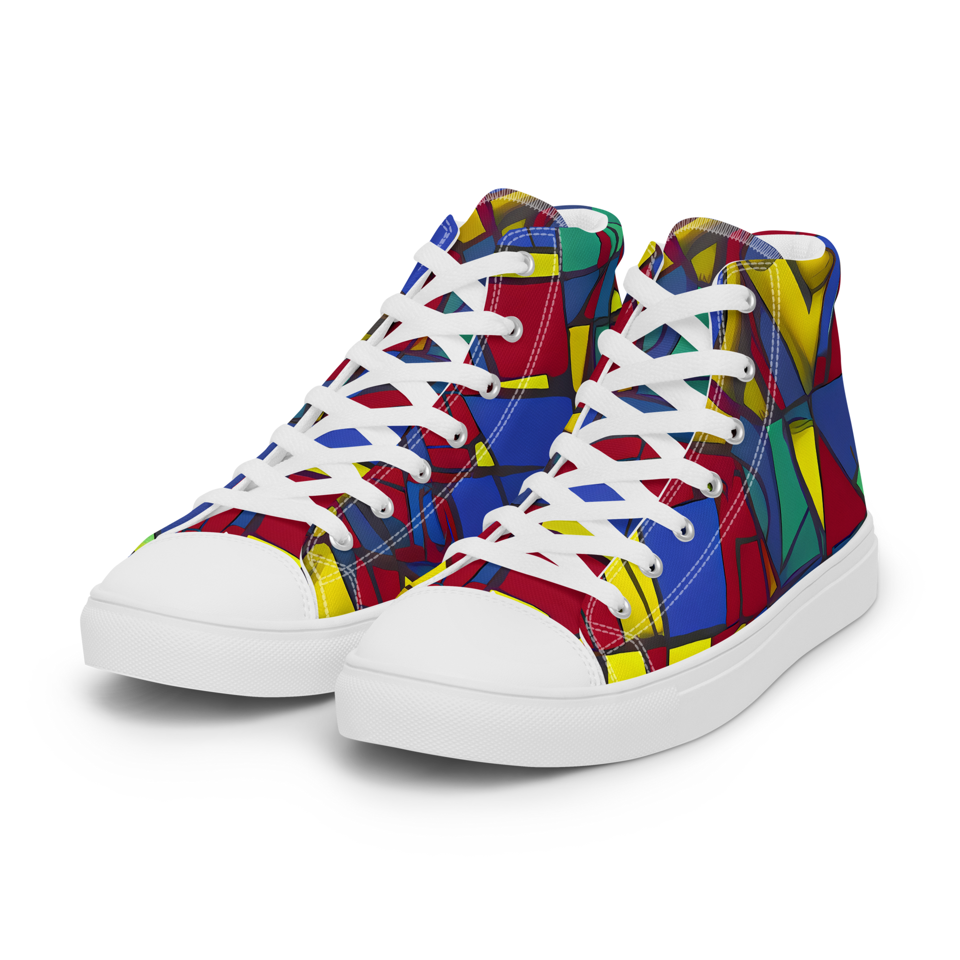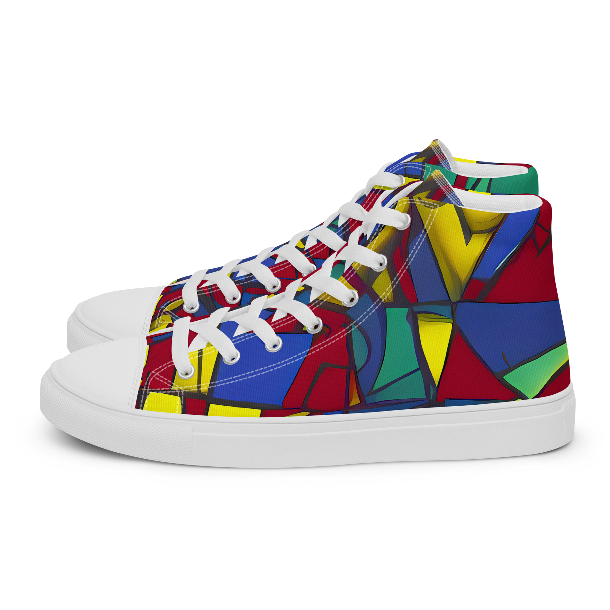 Unleash your artistic flair with our Women's High Top Canvas Shoes, featuring the electrifying "Vibrant Vexation" pattern! This eye-catching design showcases a bold geometric abstraction of striking red, vivid blue, and sunny yellow, intertwined with assertive black lines that echo modern art's dynamic spirit. Perfect for making a statement at creative events or casual outings, these shoes are not just footwear; they're a celebration of your confident, expressive style. Step into a world where comfort meets creativity!