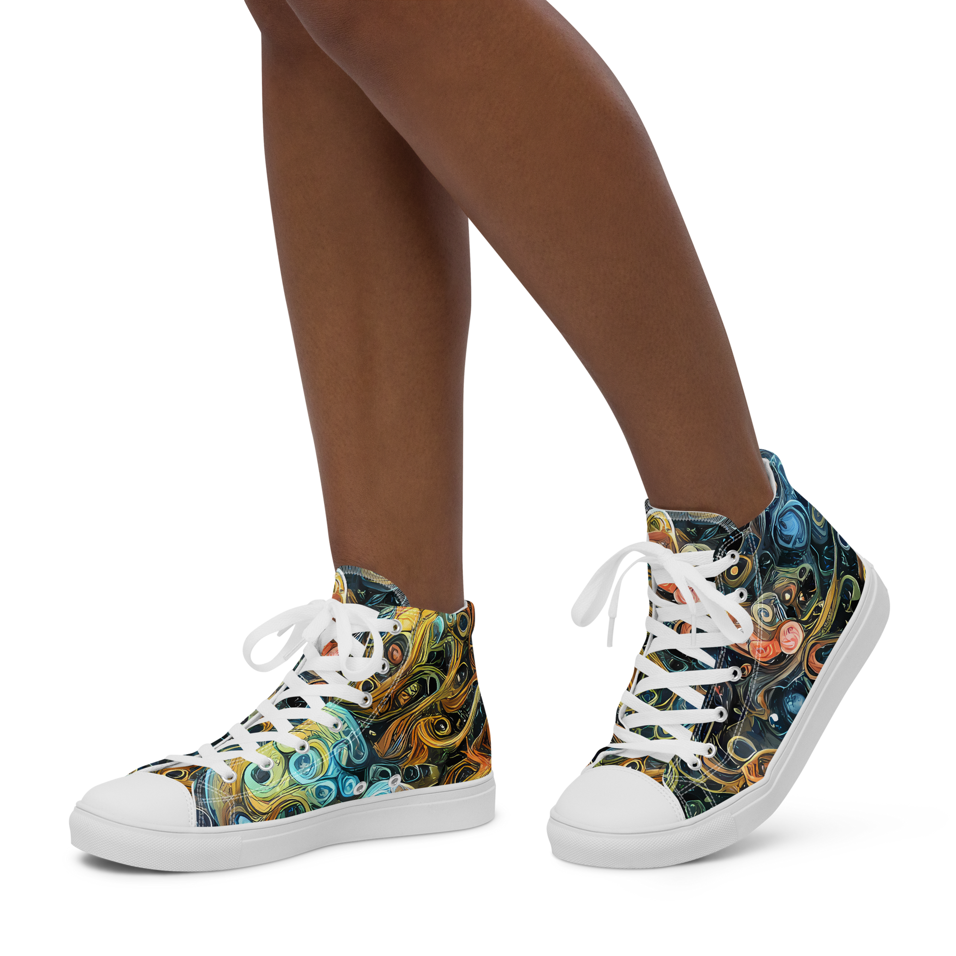 Embark on a celestial journey with every step in our High Top Canvas Shoes, adorned with a pattern that channels the enigmatic beauty of the cosmos. Swirls of blues, golds, and pinks intertwine in a dazzling dance across a night sky canvas, creating a wearable piece of art that captures the spirit of adventure and the allure of the unknown. These shoes are not just a fashion statement; they're an ode to the boundless imagination, crafted for those who dare to stand out and express their individuality with every stride.