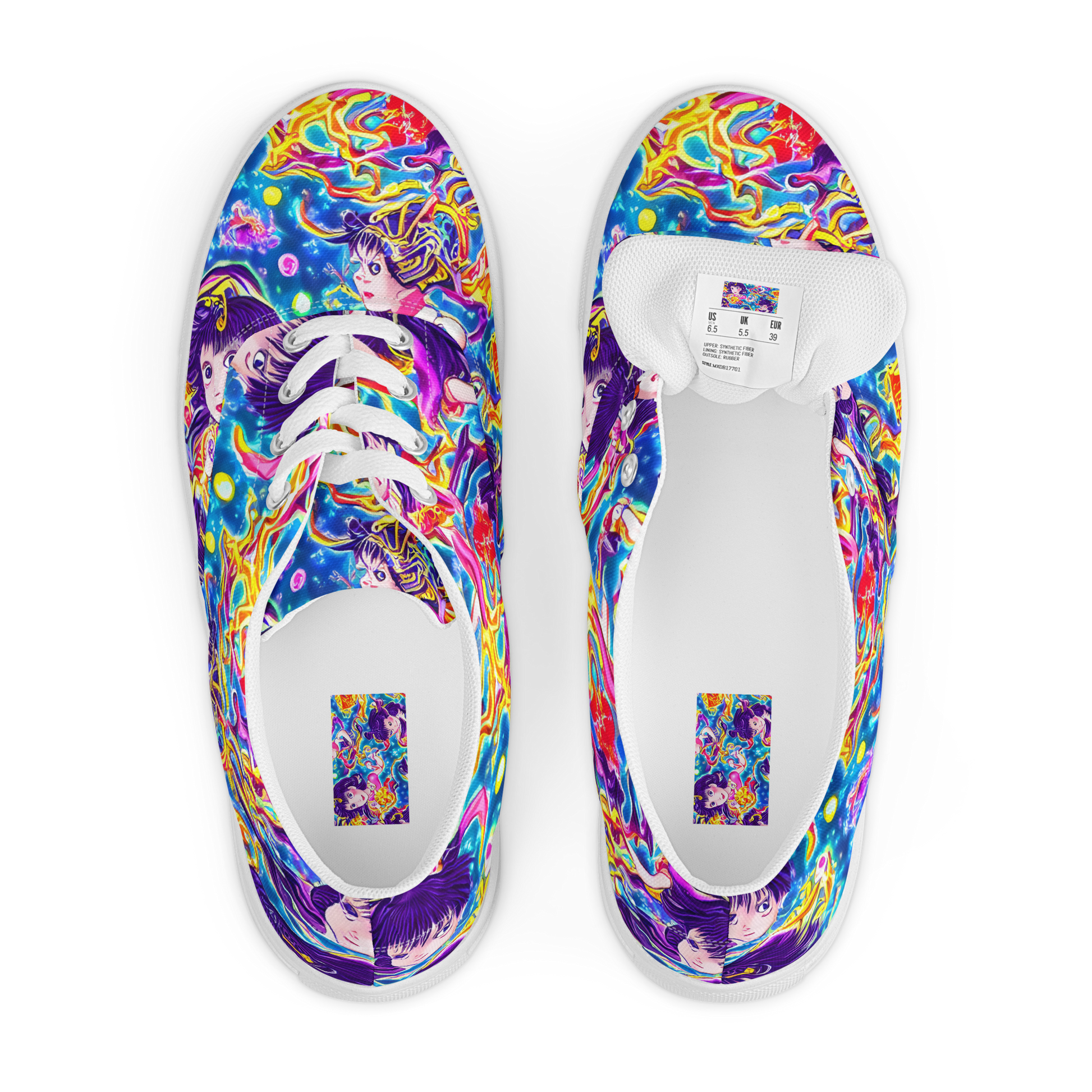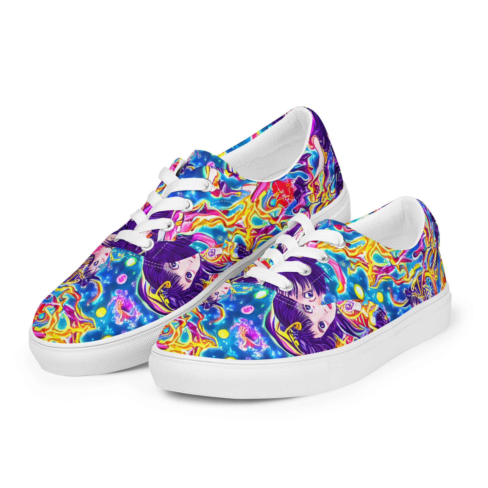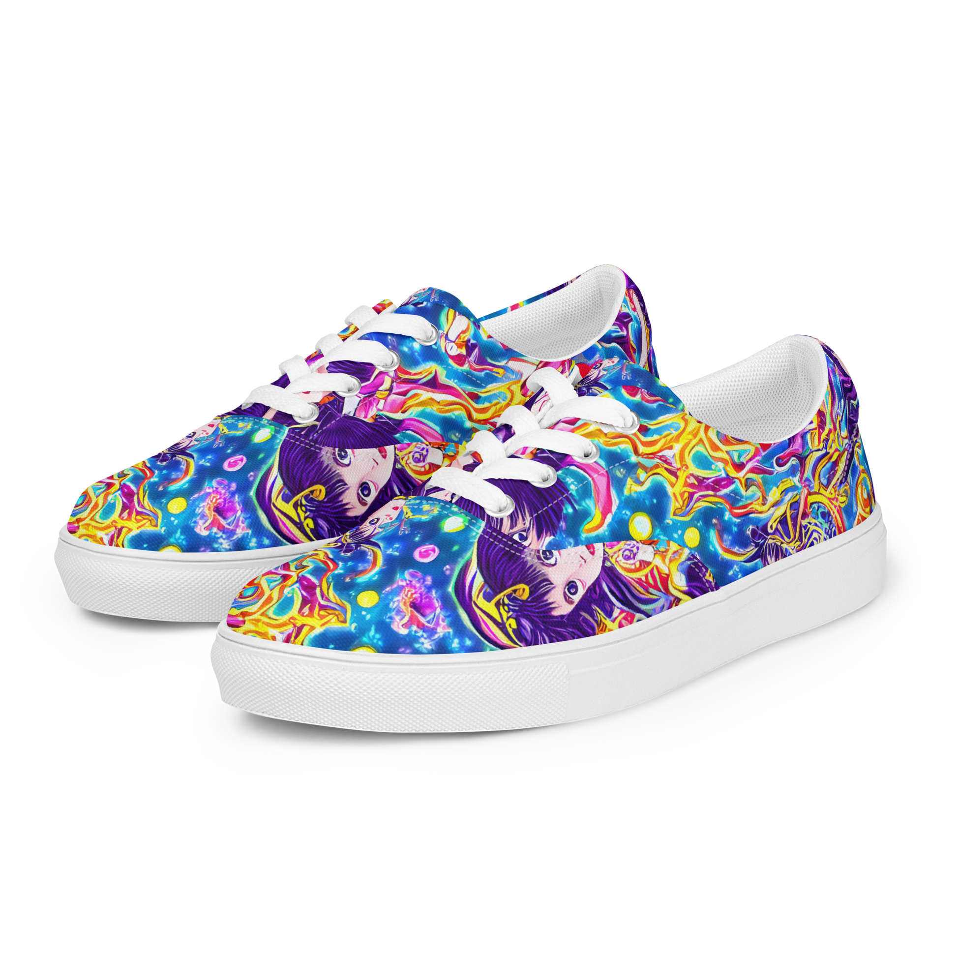 Dive into a sea of style with our Women's Lace-Up Canvas Shoes featuring the "Aquatic Whim" pattern. These sneakers are a vibrant blend of swirling purples, electric blues, and neon yellows, creating an ethereal underwater universe on your feet. Perfect for bold personalities, these shoes add a splash of surreal intrigue to any outfit, making them the ideal choice for music festivals, art galleries, or avant-garde fashion events. Experience unparalleled comfort and unique design that captures the essence of playful curiosity and otherworldly wonder. Step into a world where fashion meets art and let your feet tell a story all their own.