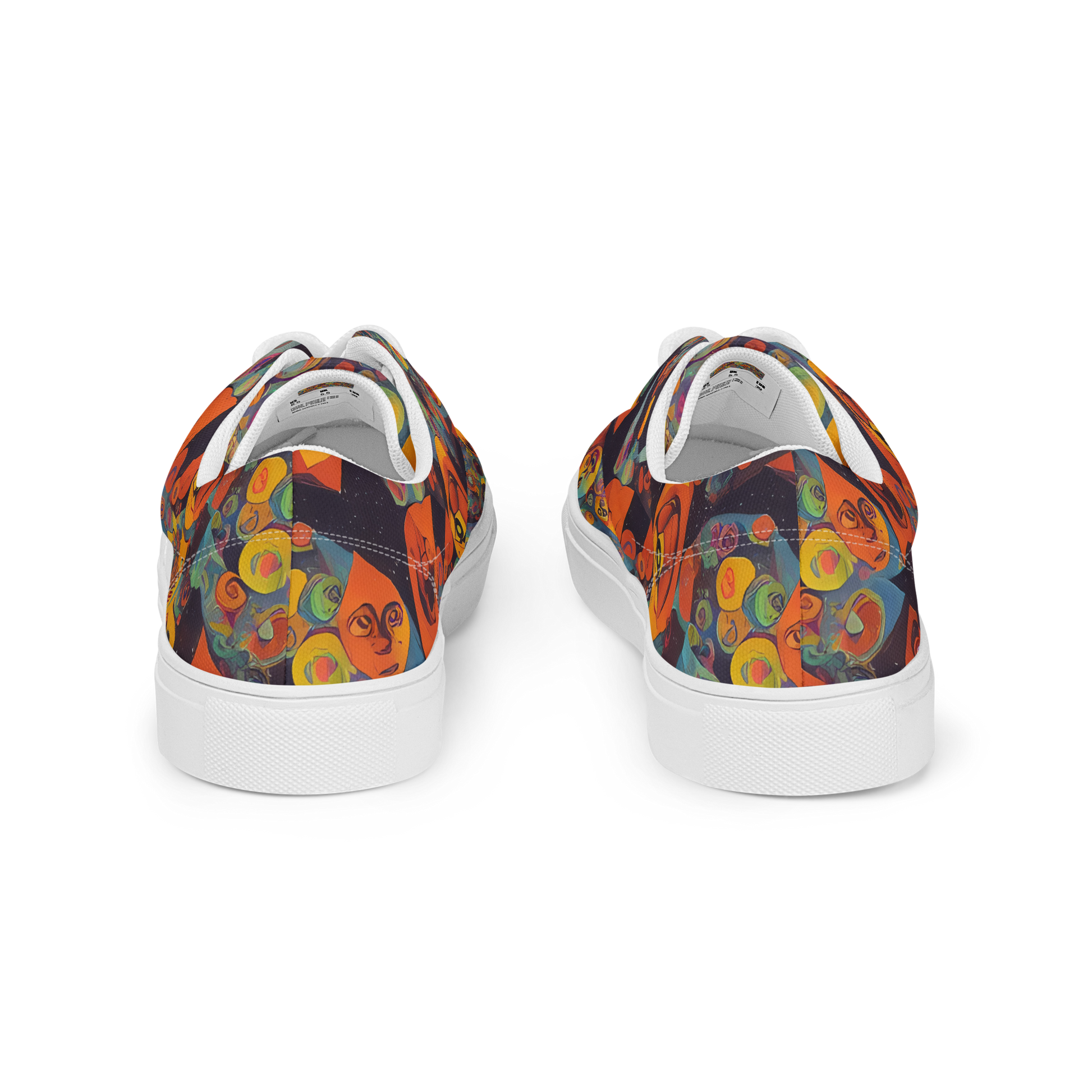 Step into a universe of style with our custom-designed women's lace-up canvas sneakers featuring the mesmerizing "Galactic Faces" pattern. This vibrant tapestry of swirling faces and celestial motifs in bold oranges, blues, and purples is perfect for those who dare to express their adventurous spirit. Whether you're heading to an art festival or a cosmic-themed party, these shoes will elevate your ensemble and spark curiosity wherever you go!