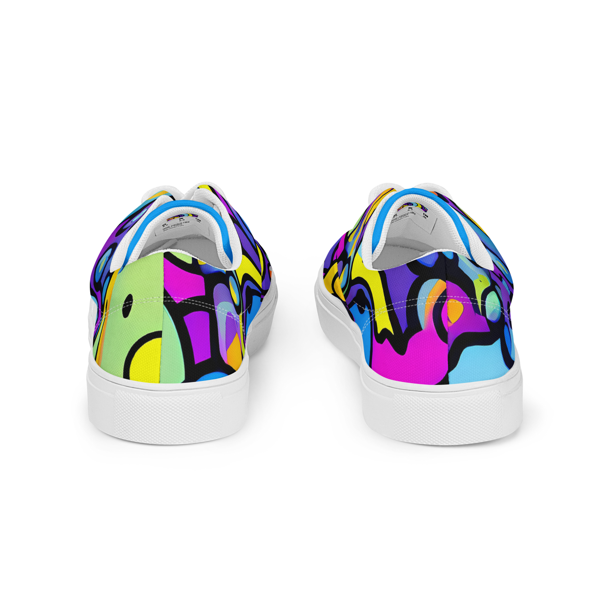 Step into a world of vibrant expression with our Women's Lace-Up Canvas Sneakers, featuring the electrifying "Radiant Lagoon" pattern! Bursting with hues of electric blue, neon green, and vivid magenta, these shoes are designed for the bold and adventurous spirit. Perfect for summer music festivals or lively art gallery openings, each pair showcases a unique AI-generated design that truly reflects your free-spirited personality. Elevate your style and make a statement with every step!