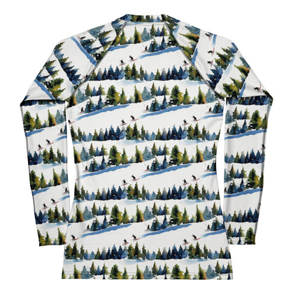 Elevate your winter adventures with our "Arctic Escape" Women's Rash Guard! This stunning long-sleeve piece features a breathtaking watercolor design that captures the spirit of alpine escapades, where skiers glide through lush evergreens under a crisp winter sky. With its palette of deep greens, icy blues, and soft whites, this rash guard is not just about style—it's about embracing the thrill of the outdoors while staying protected. Whether you're hitting the slopes or enjoying après-ski gatherings, this unique piece ensures you shine with confidence and elegance.