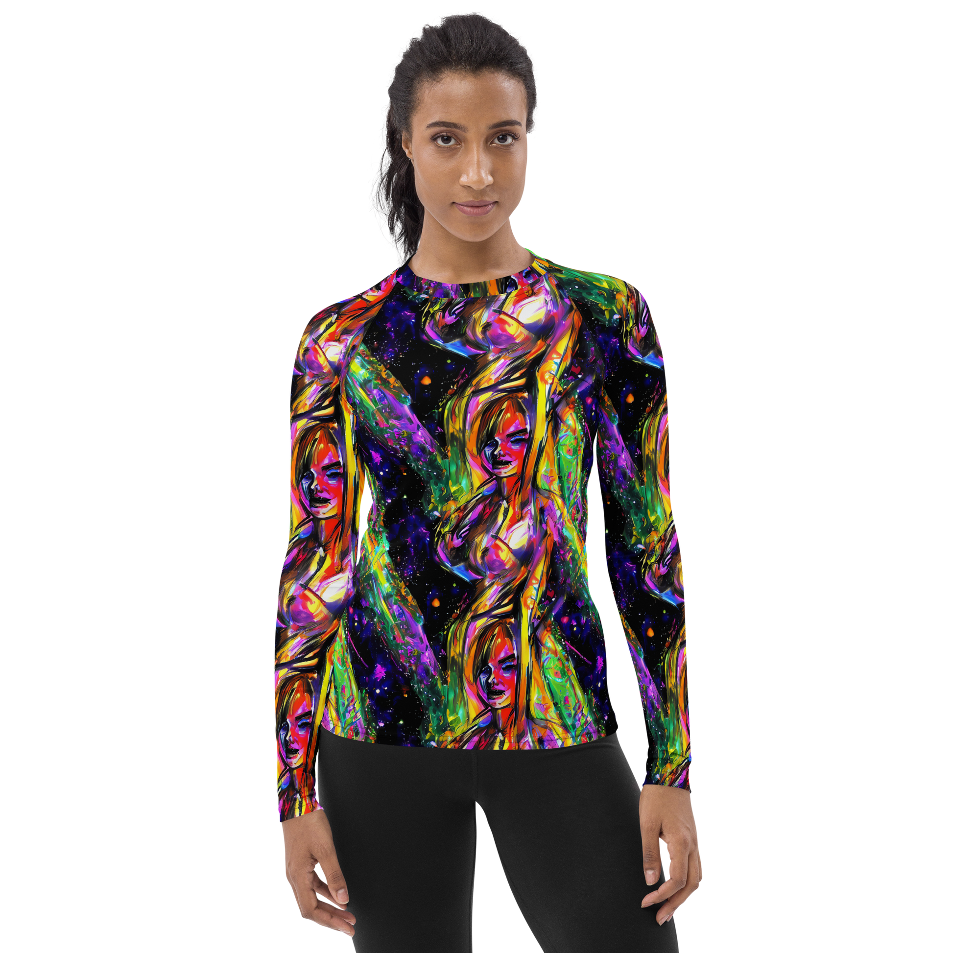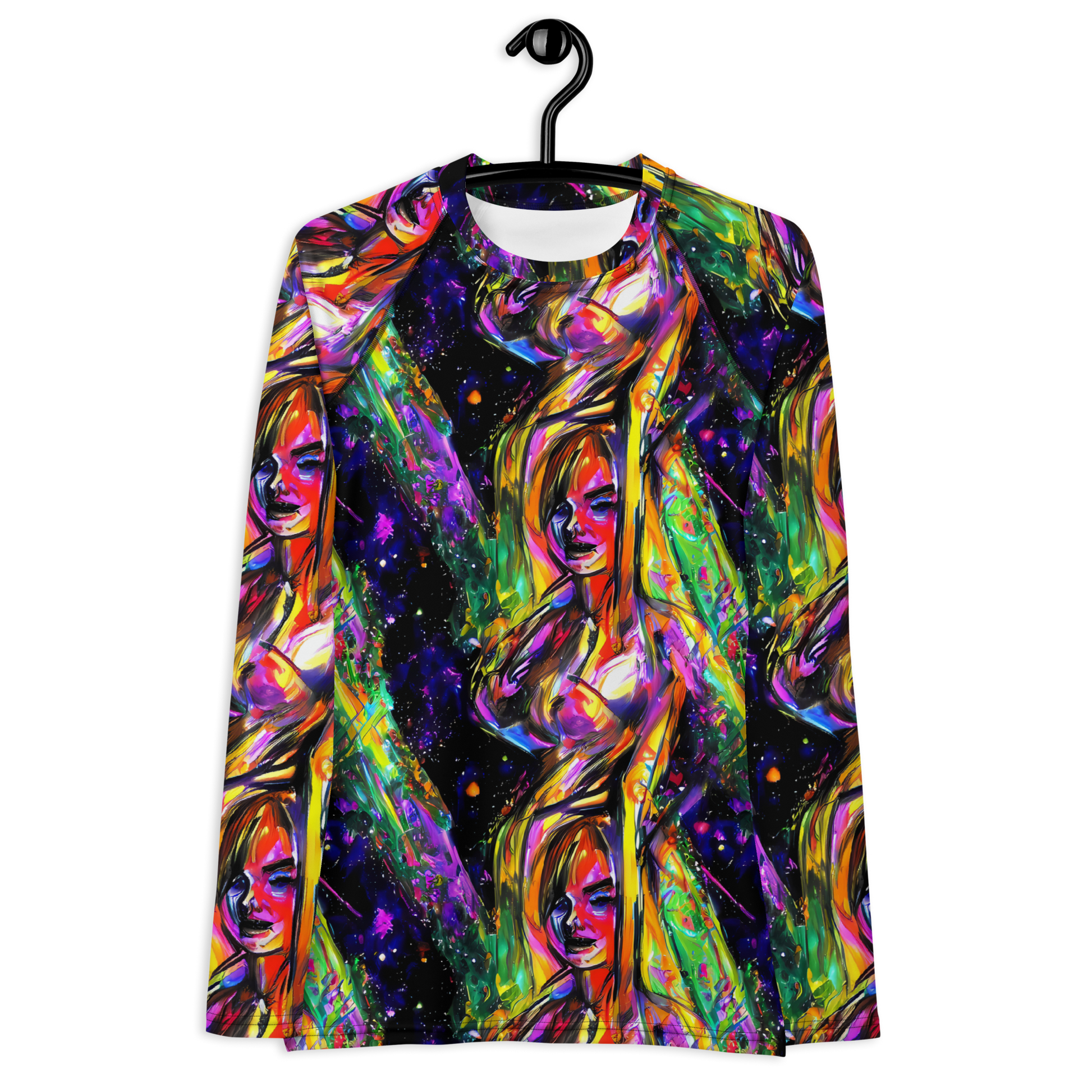 Ignite your adventurous spirit with our exclusive long-sleeve rash guard, enveloped in the "Galactic Flamenco" design. Immerse yourself in the energetic fusion of deep space and the art of dance, with deep blues, purples, and fiery oranges that dance across the fabric in a passionate display of celestial artistry. Perfect for those who live vibrantly and wish to carry the rhythm of the cosmos into their aquatic endeavors. Dive into your next wave or festival with a piece that's as expressive and unique as you are.