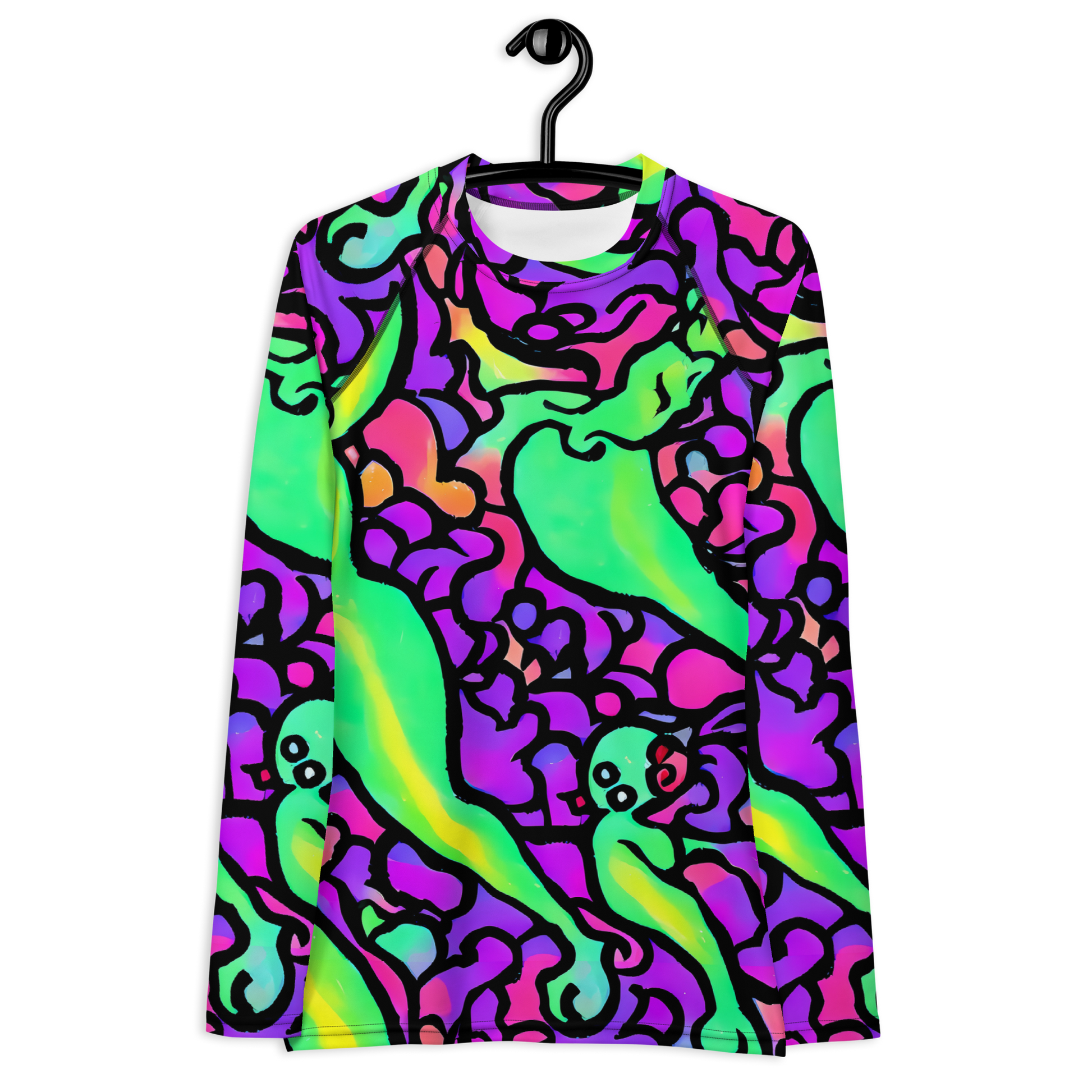 Dive into a sea of color and confidence with our long-sleeve rash guard, swirling with the electrifying neon green, pink, and purple of an abstract adventure. Envelop yourself in a tapestry of bold shapes that dance across the fabric, offering a dramatic flair that's as expressive and individualistic as your spirit. Whether you're catching waves or rays, make a statement that's as vibrant as your lifestyle.