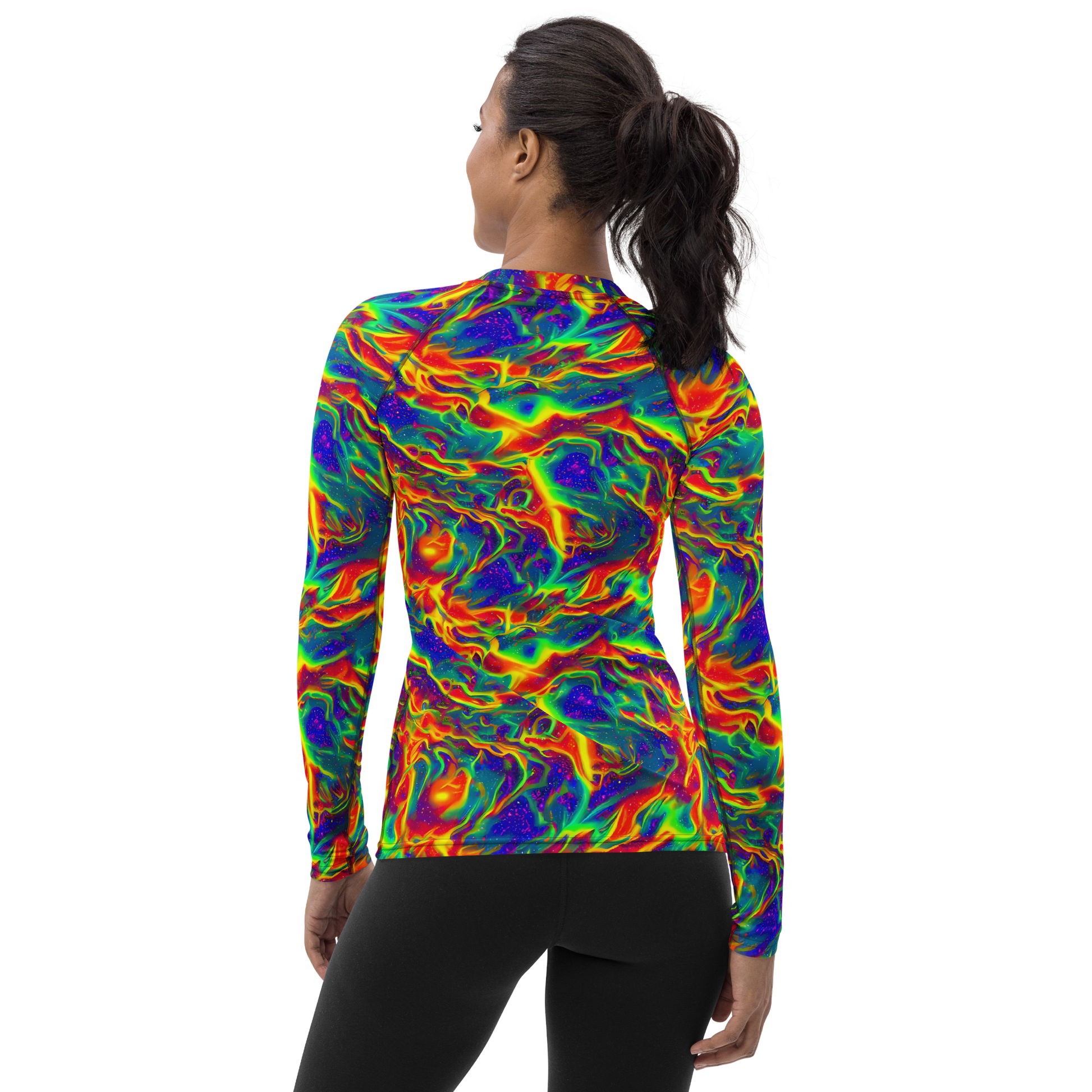 Unleash your cosmic spirit with our "Nebula Symphony" Women's Rash Guard! This vibrant, long-sleeve piece features a mesmerizing tapestry of electric blues, fiery oranges, and radiant greens, all swirling together in a dynamic dance that captures the essence of creativity and individuality. Perfect for music festivals, beach days, or any adventure under the sun, this rash guard not only protects you with UPF 50+ but also ensures you stand out in style. Embrace the elements and let your unique personality shine!
