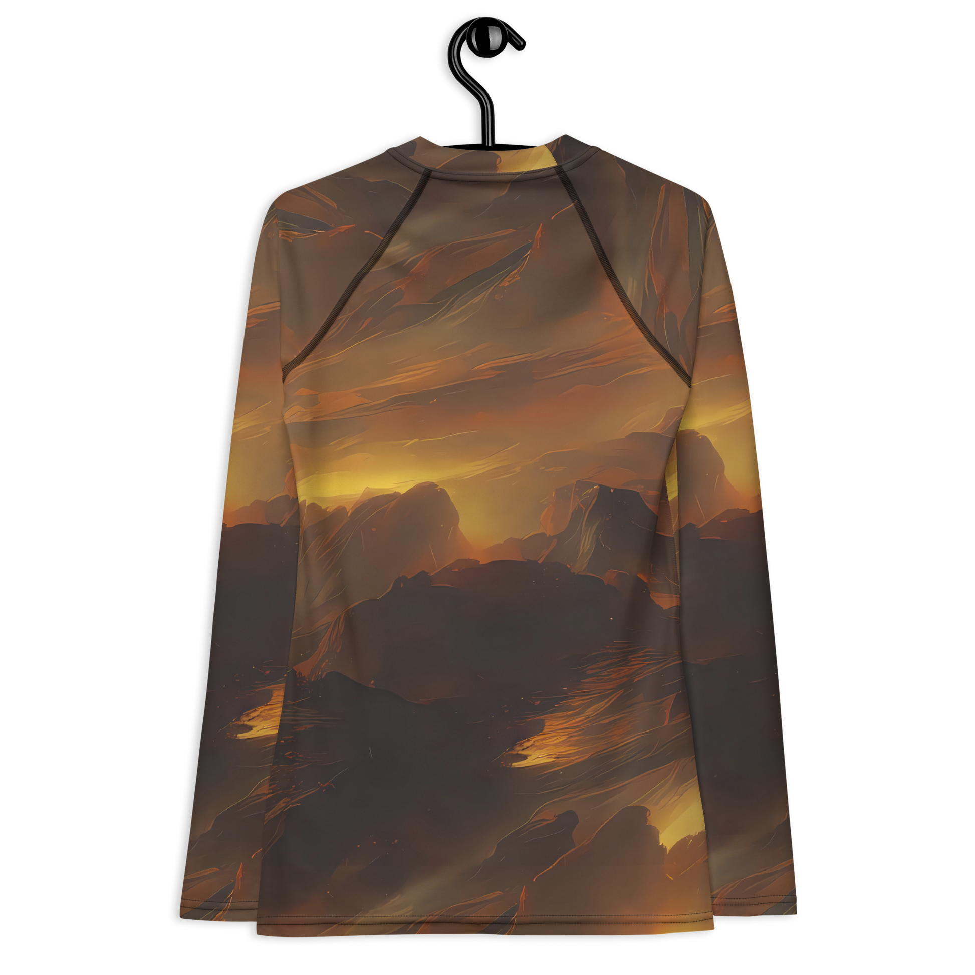 Unleash your adventurous spirit with our long-sleeve rash guard, featuring a breathtaking blend of romantic landscapes and dramatic seascapes. The rich palette of fiery oranges, deep reds, and shadowy purples captures the intense beauty of a sunset over rugged cliffs and tranquil waters, making it perfect for evening gatherings, art exhibitions, or autumn outings. This unique design, combined with top-notch functionality, ensures you stand out with confidence and style.