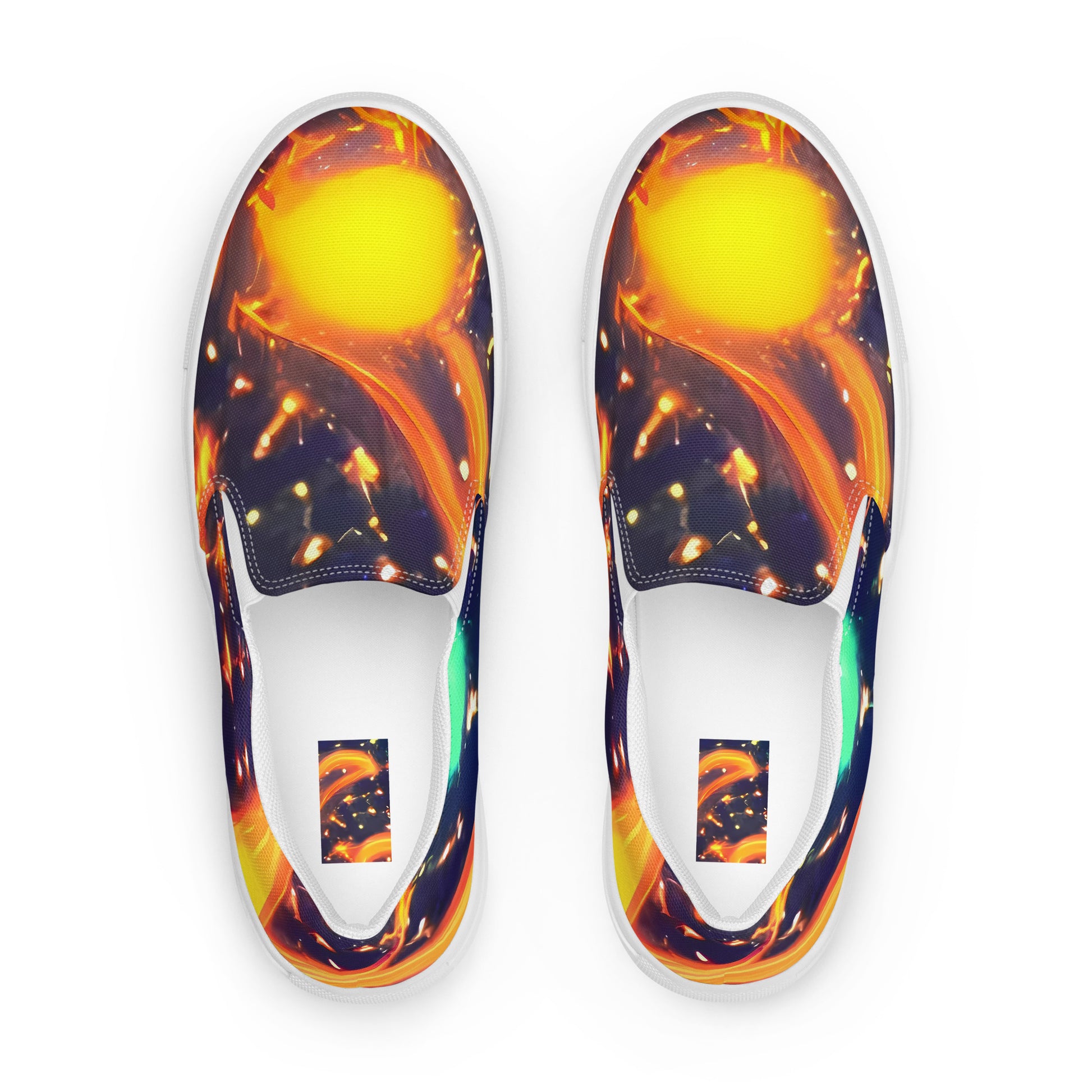 Elevate your footwear game with our Custom AI-Designed Women's Slip-On Canvas Shoes, featuring the enchanting "Coorte's Cosmos" pattern! This vibrant design showcases celestial wonders in fiery orange, tranquil teal, and mellow yellow, all dancing against a deep midnight blue backdrop. Perfect for dreamers and romantics alike, these shoes add a touch of cosmic elegance to any outfit, making them a must-have for evening events and autumn gatherings.