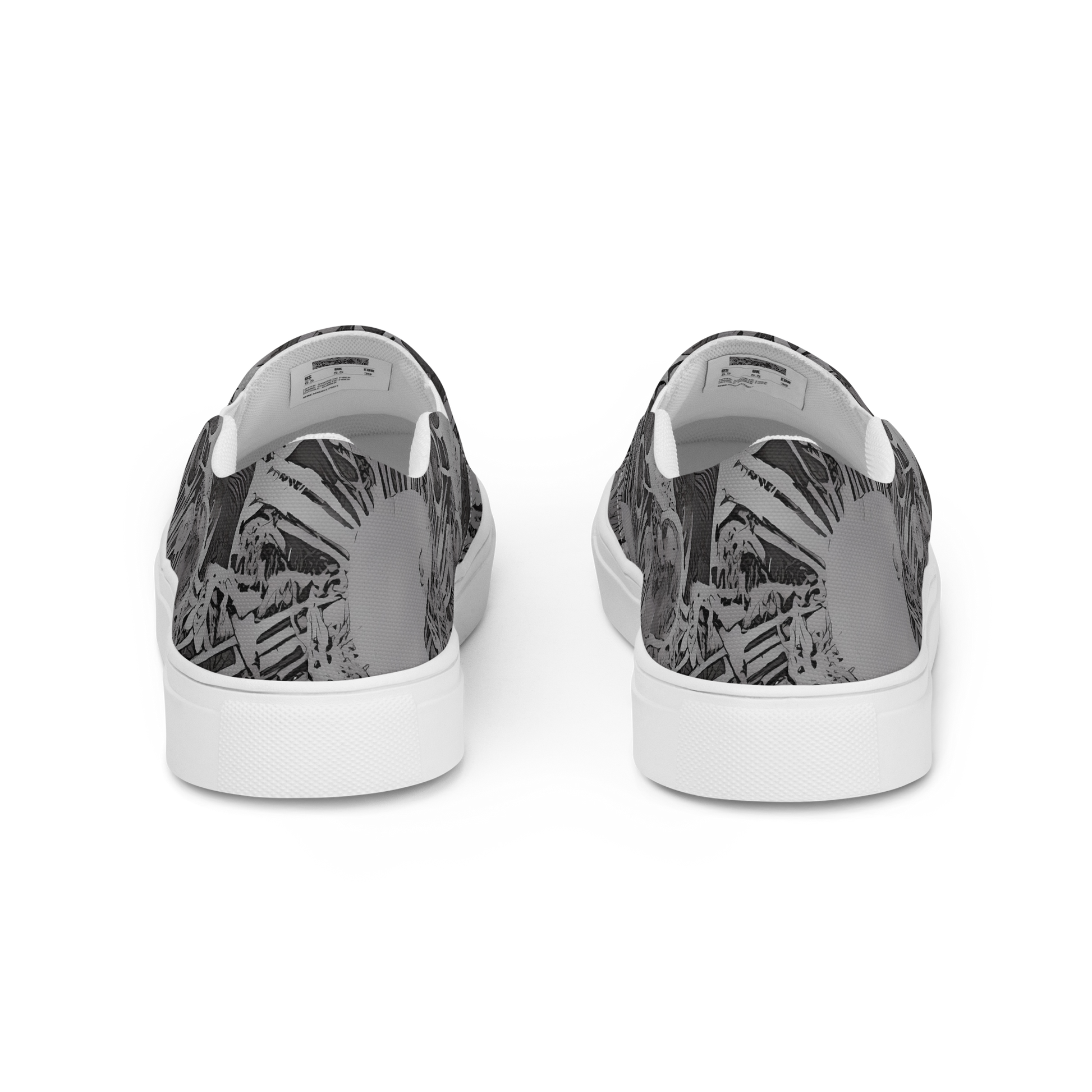 Step into a world of mystery and artistry with our Custom AI-Designed Women's Slip-On Canvas Shoes, featuring the captivating "Dusk Enigma" pattern. This intricate design weaves together grayscale tones and abstract shapes, creating a hypnotic visual experience that transforms your footwear into a statement piece. Perfect for those who embrace their bold, introspective side, these shoes are ideal for avant-garde evenings and art gallery openings, merging comfort with an air of enigmatic allure.