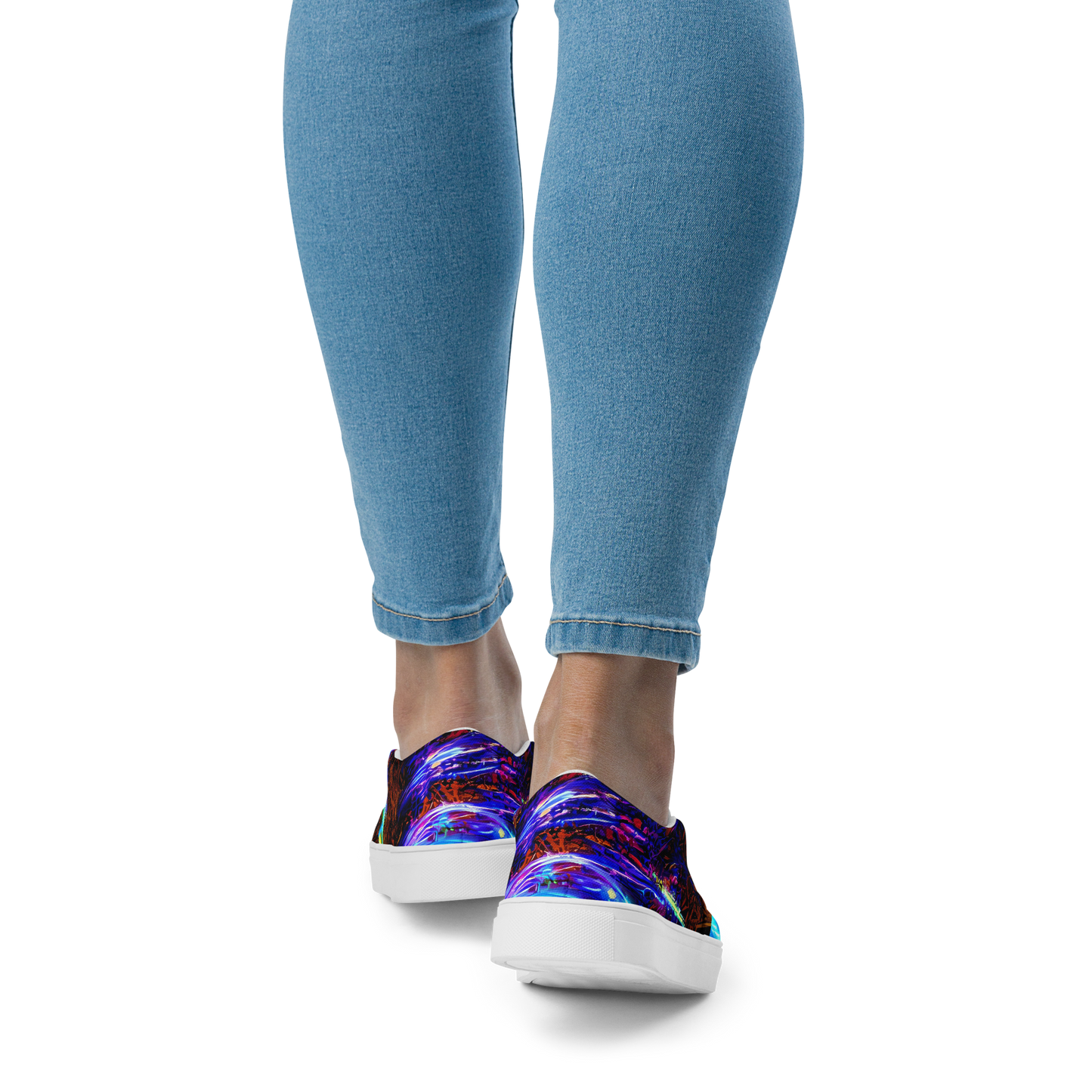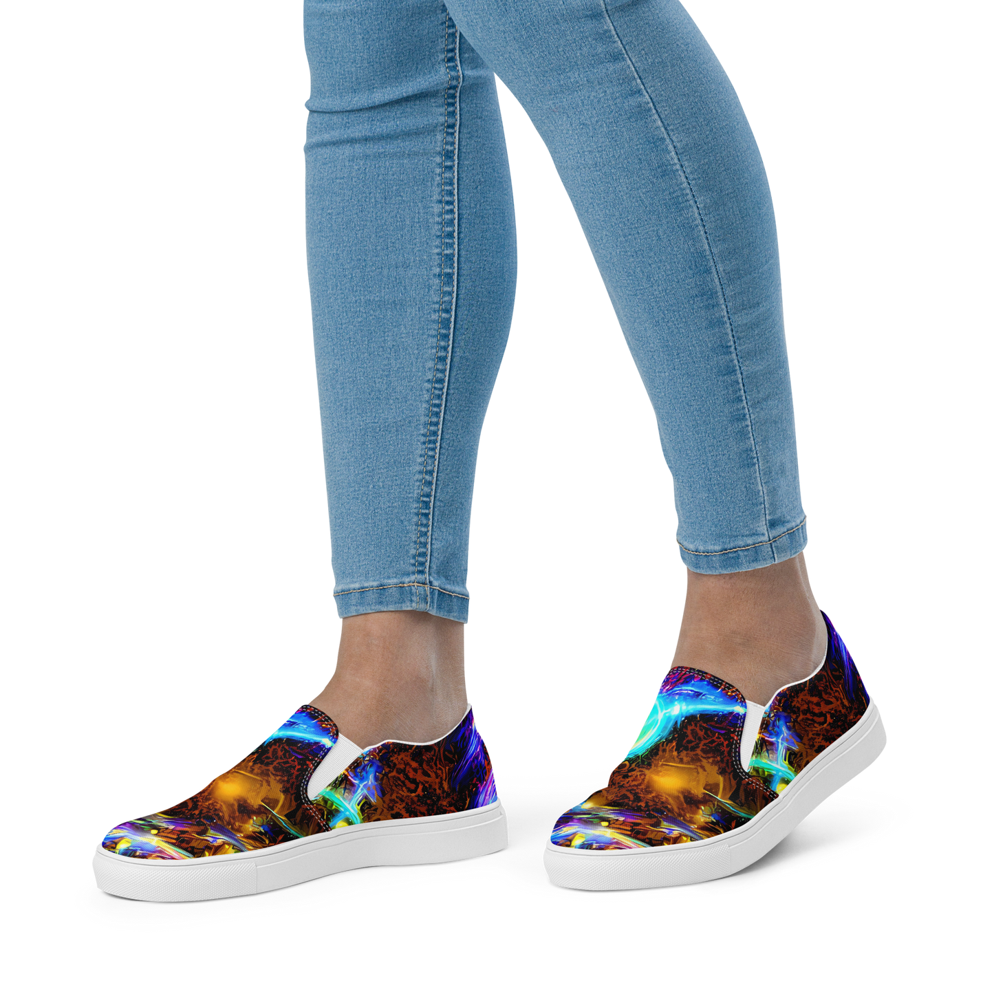 Ignite your wardrobe with a splash of cosmic vibrancy! Our Women's Slip-On Canvas Shoes are a masterpiece of comfort and expression, featuring an electrifying pattern that dances with electric blues, radiant yellows, and fiery crimsons. Perfect for those who dare to stand out, these shoes are your ticket to becoming the life of every party, from music festivals to art events, or any night where fashion meets passion.