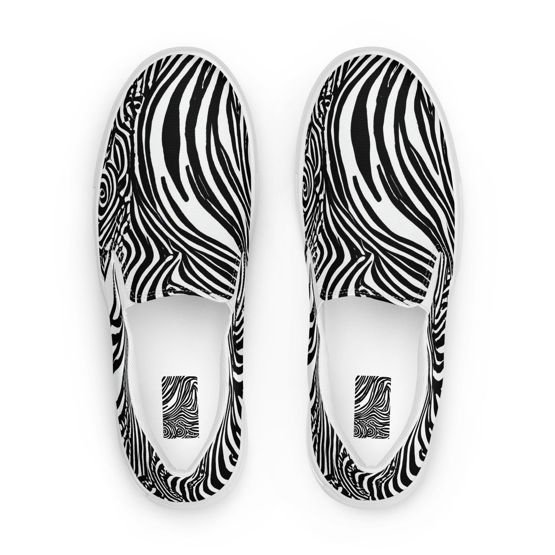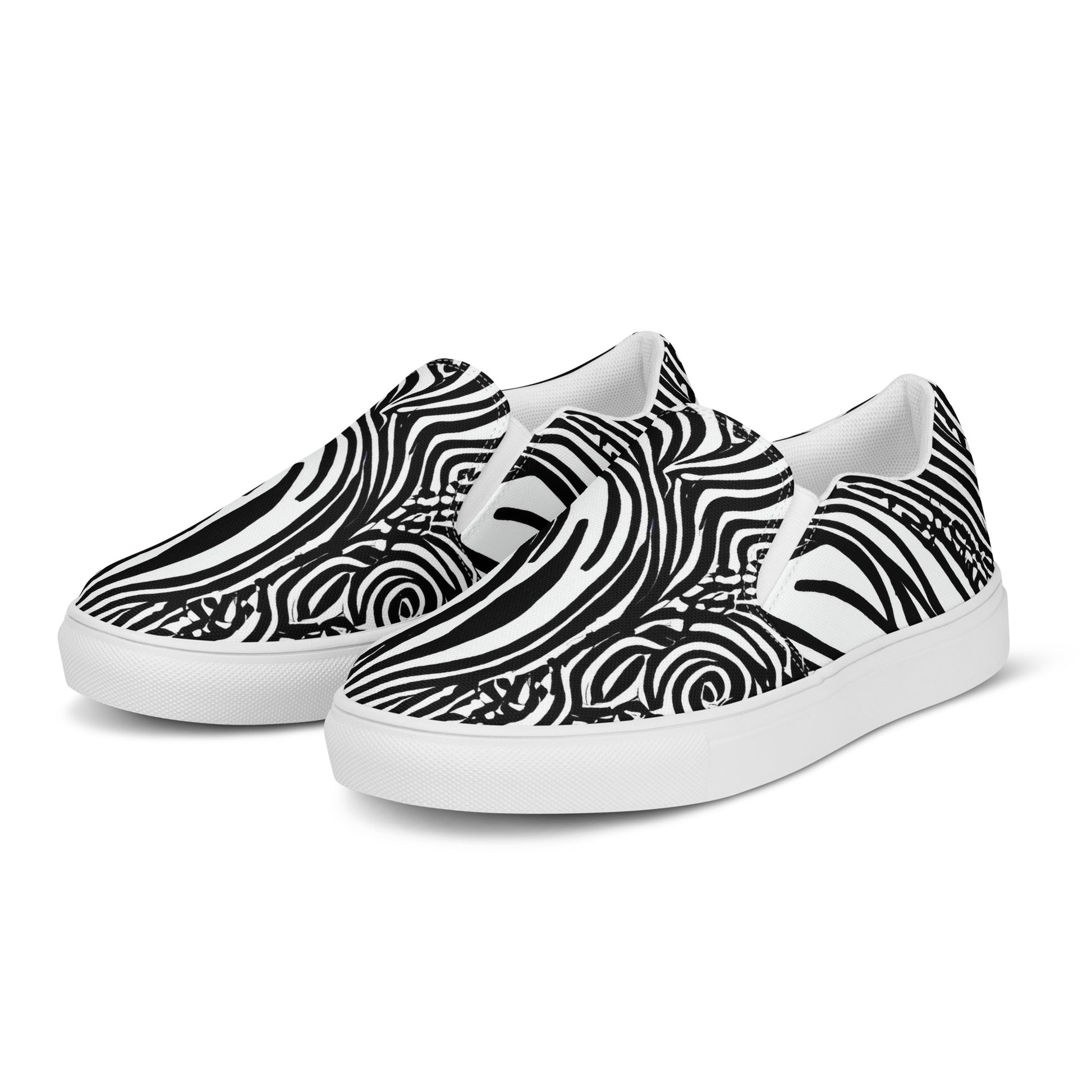 Step into a realm of artistic expression with our Custom AI-Designed Women's Slip-On Canvas Shoes, featuring the captivating "Tidal Tangle" pattern! This mesmerizing monochrome design weaves intricate black and white swirls that dance like ocean currents, making these shoes the perfect statement piece for the daring and adventurous spirit. Whether you're attending an avant-garde gathering or a vibrant music festival, these shoes effortlessly blend comfort with bold style, ensuring you stand out in any crowd.