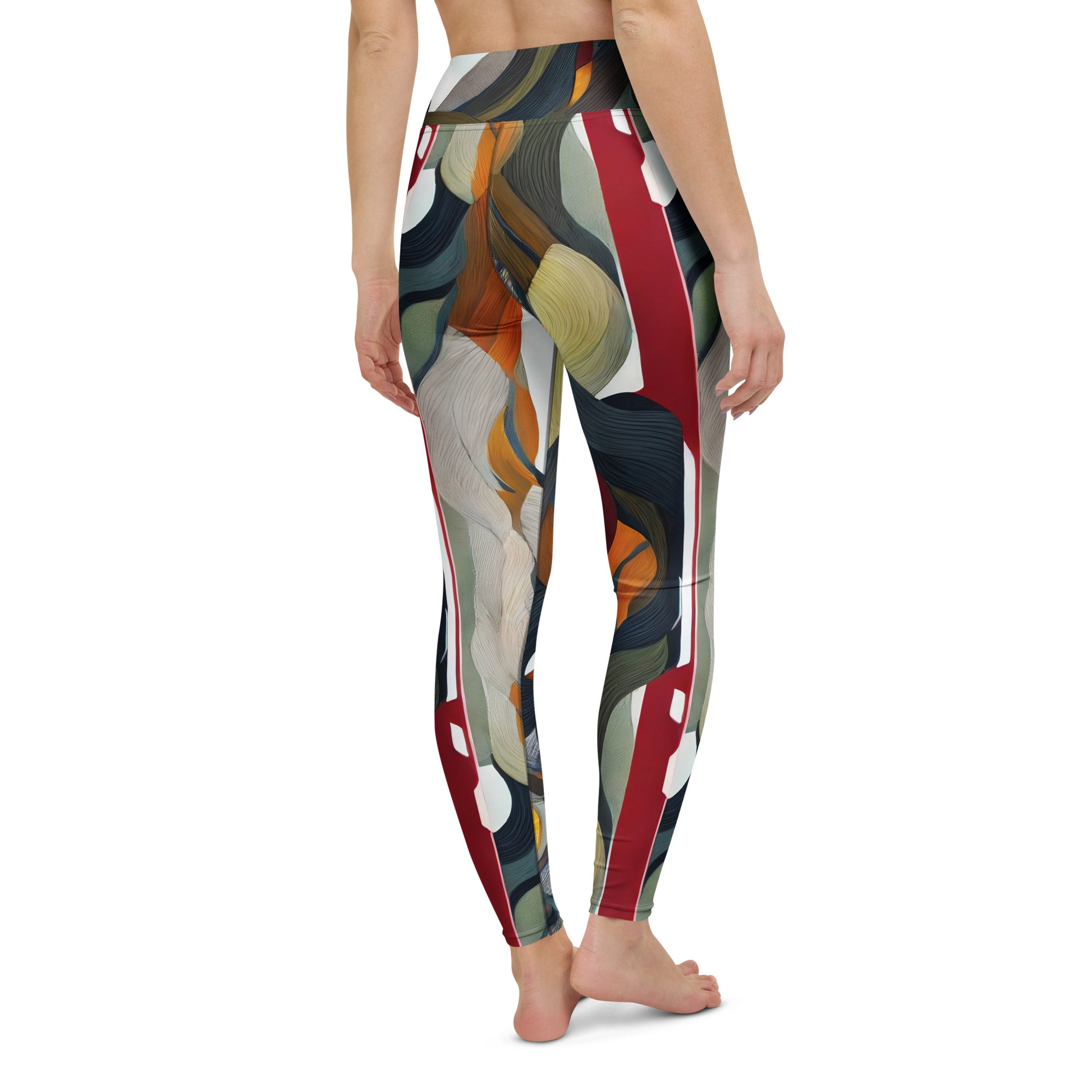 Elevate your practice with our "Analog Dreams" yoga leggings, where futuristic nostalgia meets unparalleled comfort! Adorned with a mesmerizing fusion of warm oranges, deep blues, and rich reds, this unique design features sleek metallic accents that radiate innovation and creativity. Perfect for making a statement both on and off the mat, these leggings embrace your every move with a dynamic texture that feels as ethereal as it looks. Experience the ultimate blend of style and function, and let your bold personality shine!
