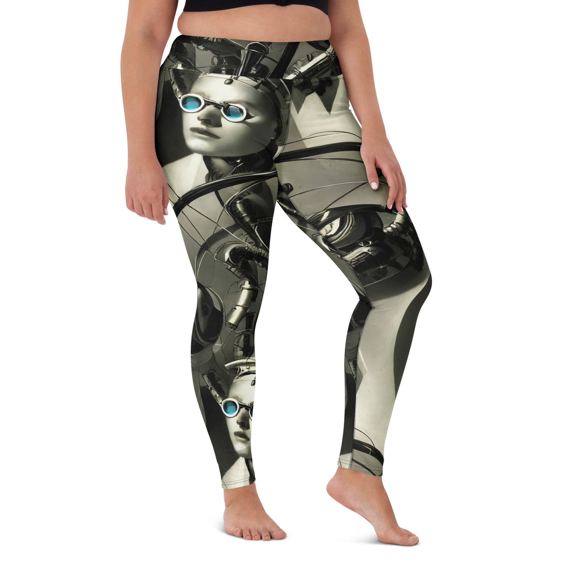 Step into a world of futuristic elegance with our "Cyber Reverie" yoga leggings, where avant-garde sophistication meets unparalleled comfort. Designed for the bold and imaginative, these leggings feature a stunning monochromatic pattern infused with metallic sheens and vibrant blue accents, making them the perfect statement piece for both your yoga practice and stylish urban outings. Experience the ultimate in softness and flexibility as you flow freely, embodying a chic, otherworldly vibe that resonates with your visionary spirit.