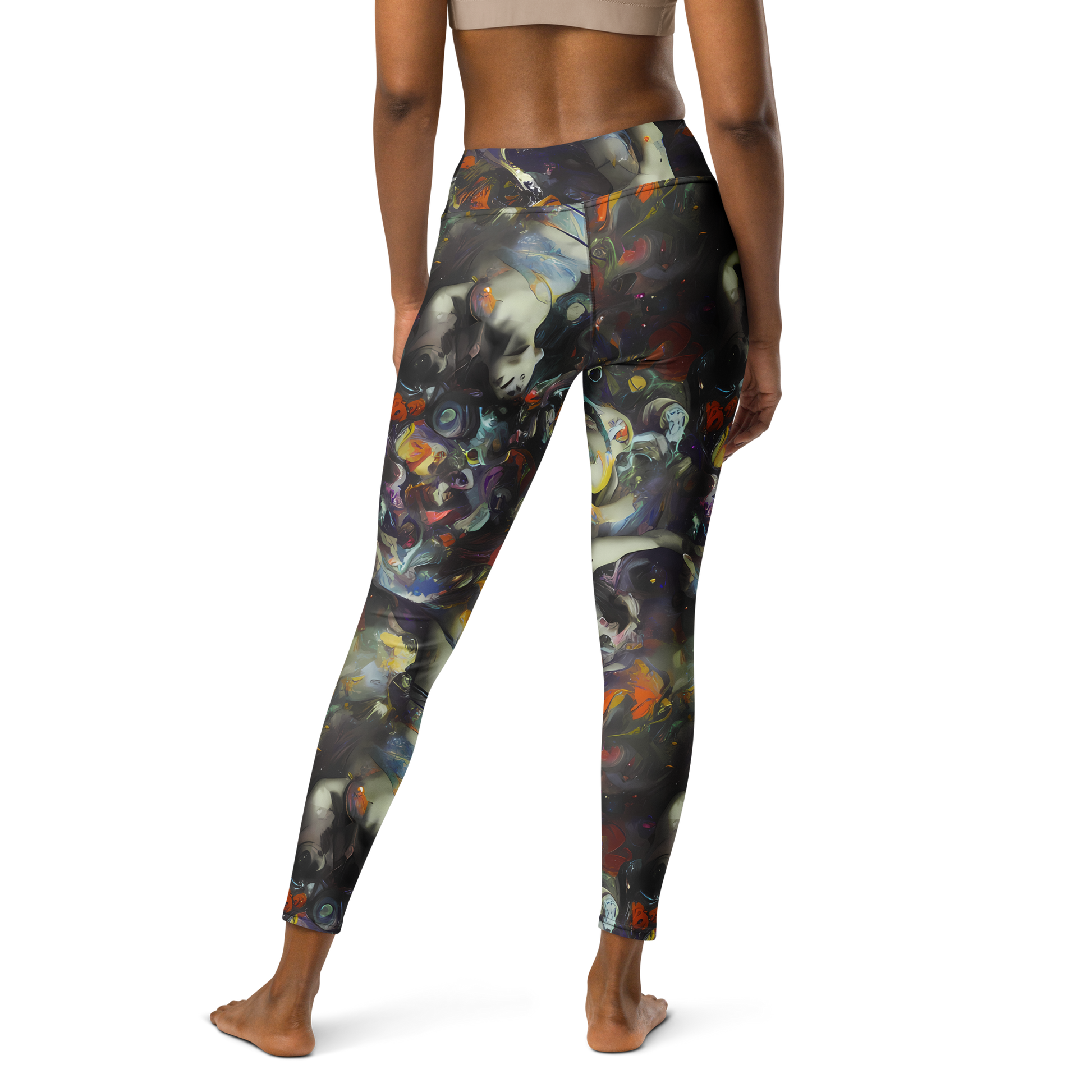 Step into a world of passionate creativity and introspection with our AI-designed yoga leggings, featuring a mesmerizing blend of abstract elements and fluid shapes in deep blacks, vibrant purples, and fiery oranges. Perfect for making a bold statement at avant-garde events or art gallery openings, these leggings are as expressive as they are functional.