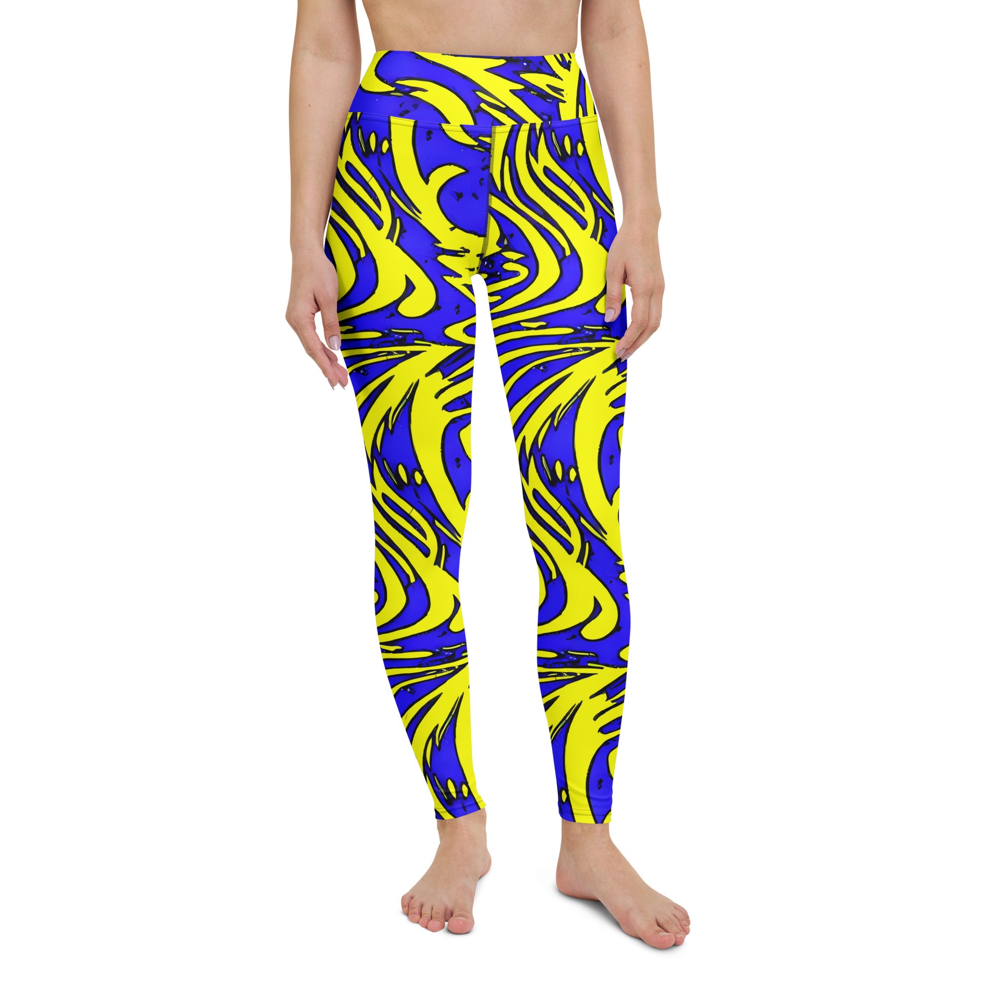 Ignite your practice with our "Fleeting Firefly" yoga leggings, where vibrant electric yellow and deep cobalt blue swirl together to create a dazzling display reminiscent of fireflies dancing against a cosmic sky. These AI-designed leggings not only make a bold fashion statement, but also offer the ultimate in comfort and flexibility, ensuring you flow freely on and off the mat. Perfect for summer music festivals or art gallery openings, embrace your adventurous spirit and stand out with every move!