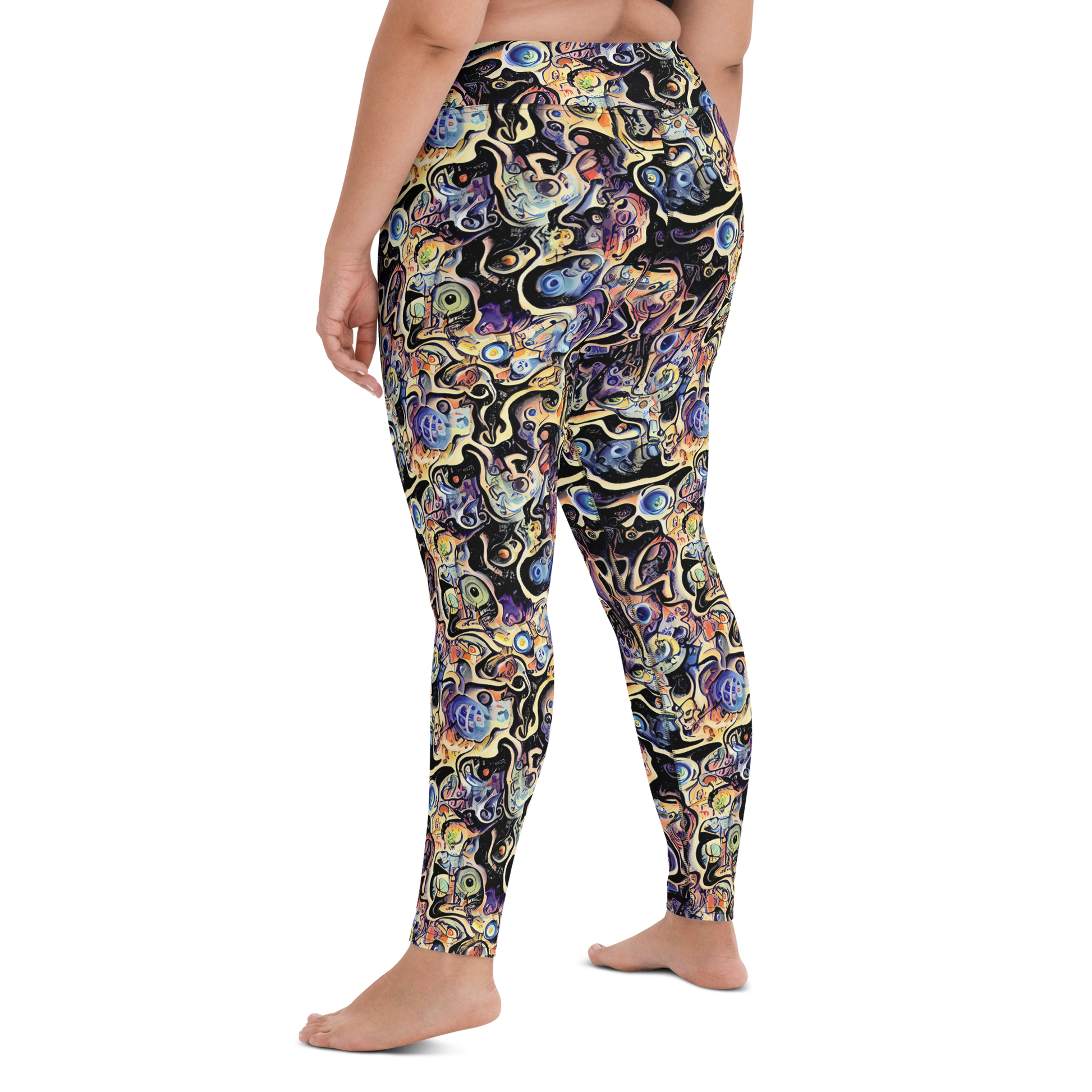 Ignite your yoga practice with our exclusive leggings, featuring a mesmerizing design inspired by the boundless universe and the vivid expressionism of George Grosz. Our leggings are a canvas of chaos and creativity, with swirling blues, fiery oranges, and radiant yellows that capture the essence of deep space exploration and artistic freedom. Perfect for those who dare to stand out, these leggings are your companion for festivals, creative sessions, or a bold statement in your everyday flow.