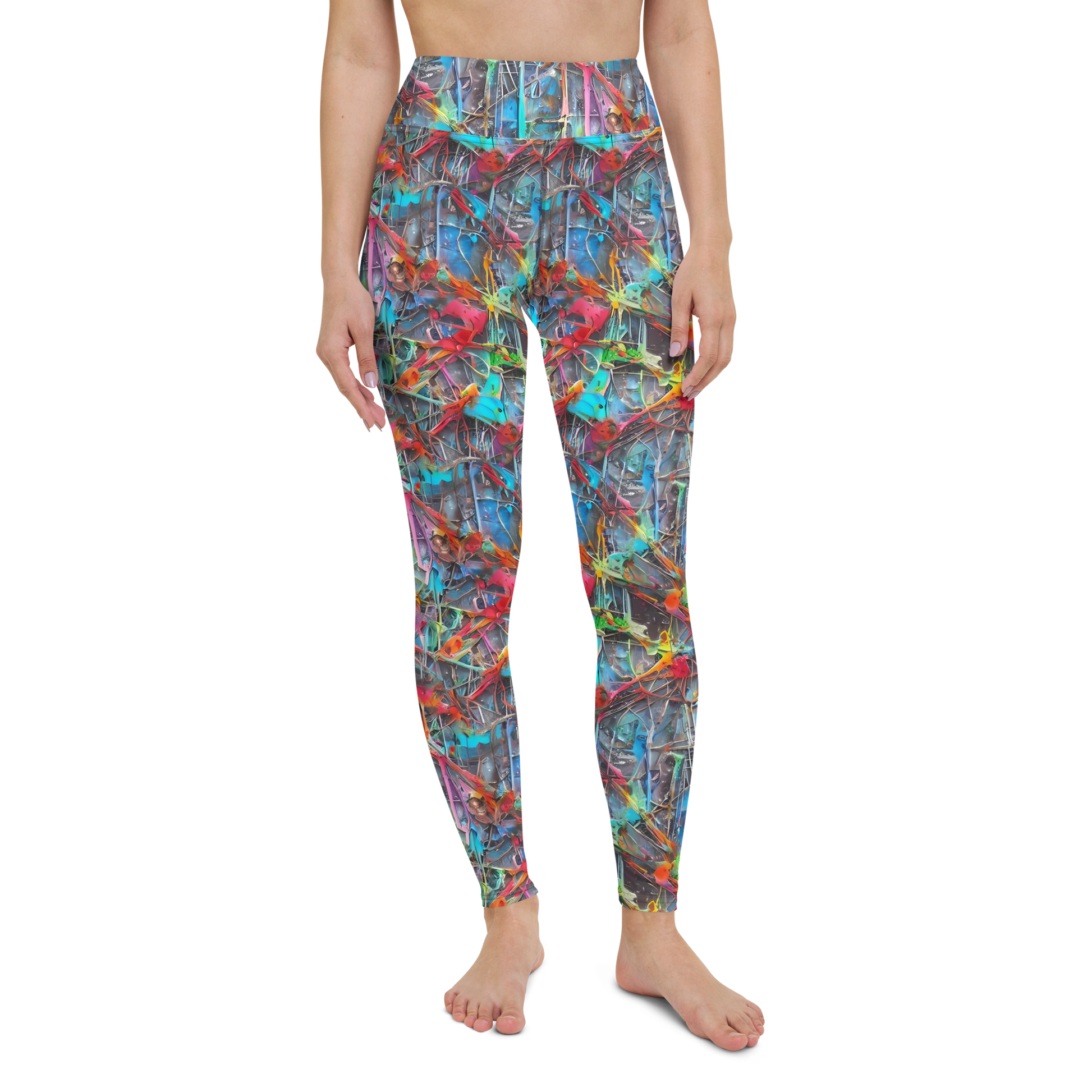 Ignite your yoga practice with our electrifying leggings, featuring the "Junkyard Jewel" design. Immerse yourself in a canvas of vivid hues and metallic textures, where splashes of neon pinks, electric blues, and fiery oranges collide with cool grays and silvers. Embrace the urban pulse and avant-garde flair of this unique pattern, perfect for those who dare to stand out and express their eclectic spirit in every pose.