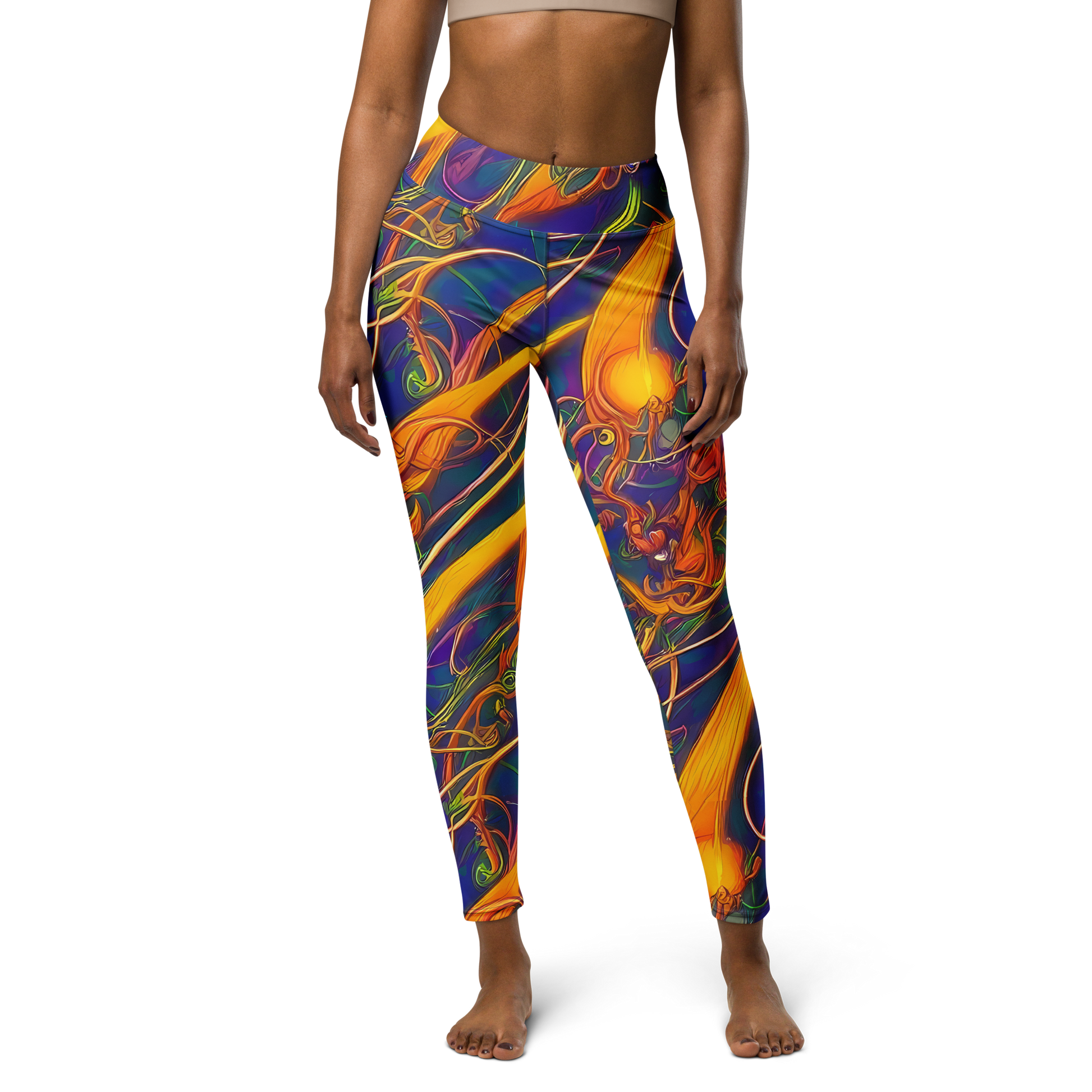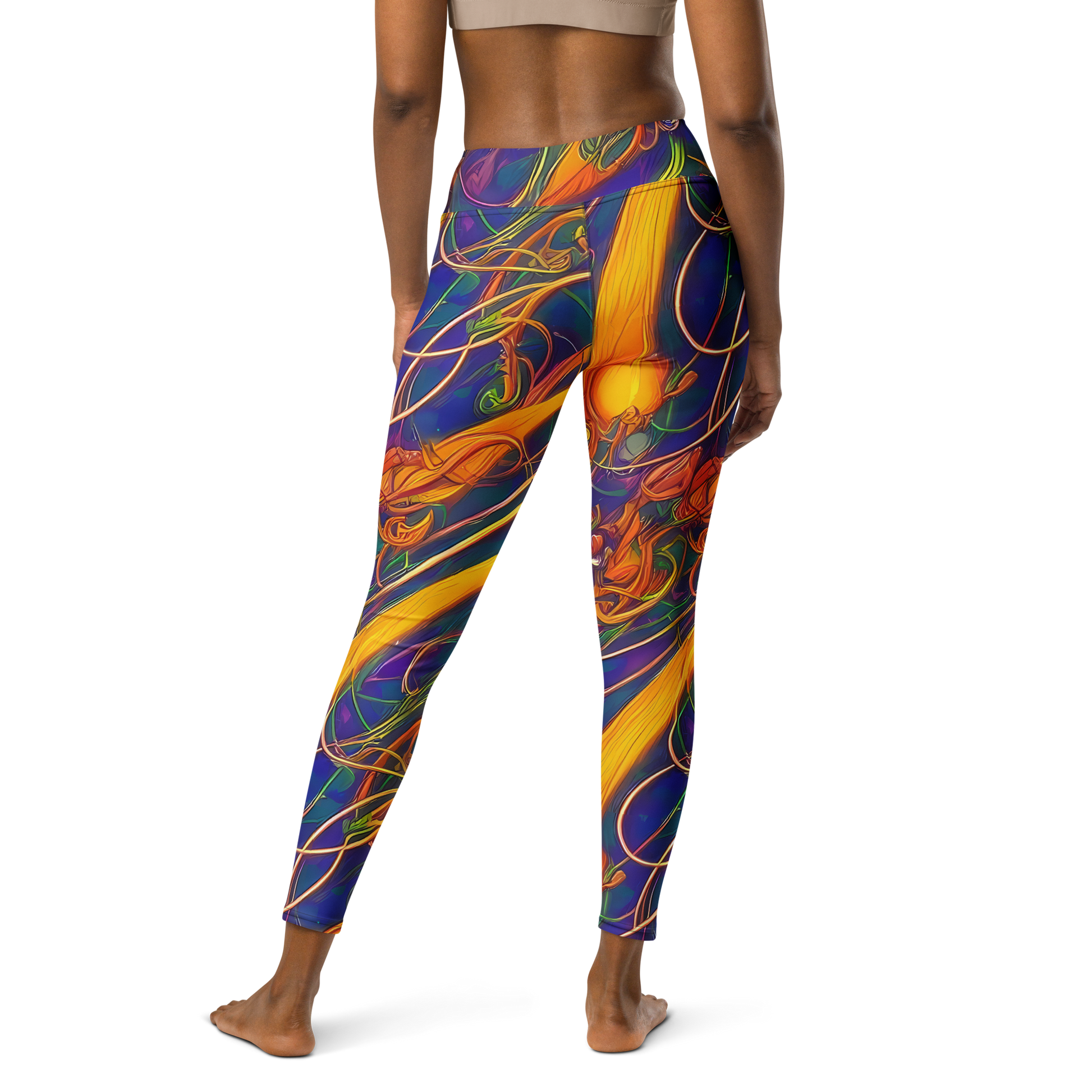 Elevate your yoga experience with our "Luminous Whirl" yoga leggings, where art meets functionality. Adorned with swirling golden tendrils against a cosmic blue backdrop, these leggings embody a sense of dynamic motion and otherworldly beauty, ensuring you stand out both on and off the mat. Perfect for your evening soirées or vibrant spring gatherings, they are designed for the creative and adventurous spirit in you.