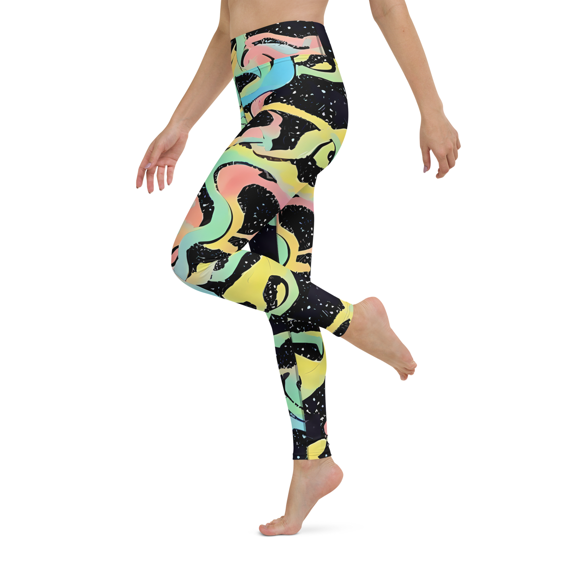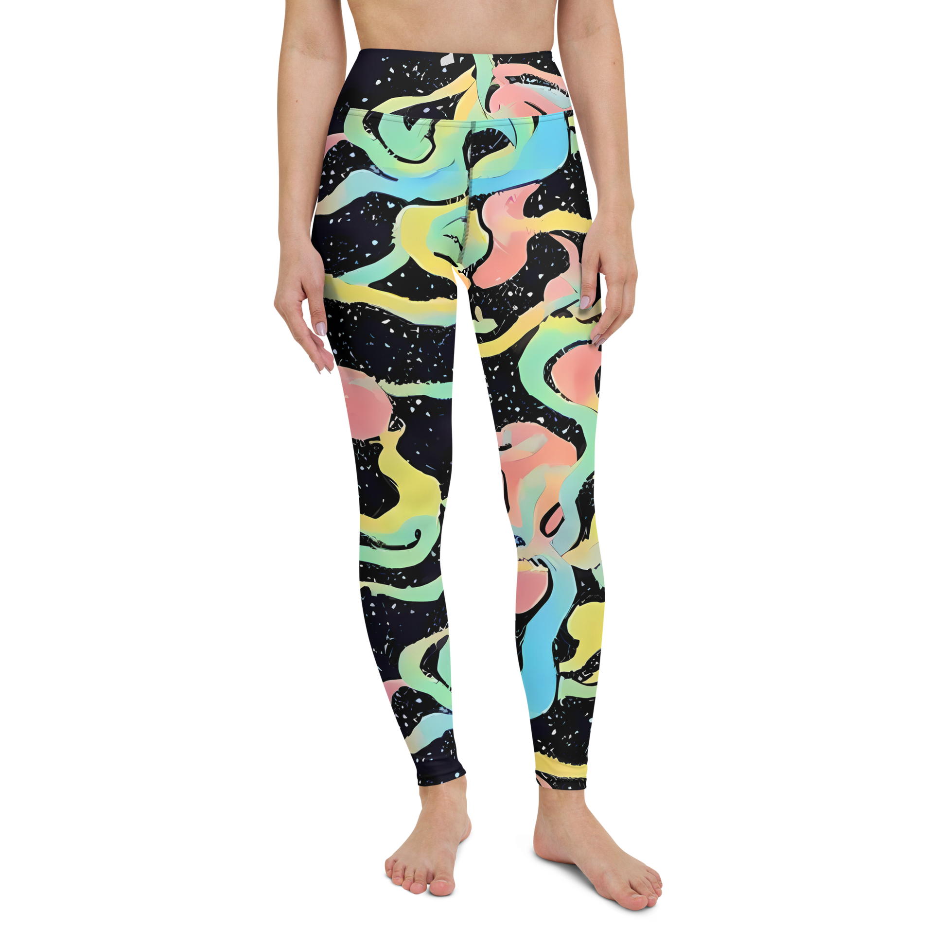 Embrace the cosmos and your creativity with our yoga leggings, featuring a dazzling pattern that dances with vibrant, abstract shapes. Dive into a universe where pink, yellow, and pale blue hues play against a deep black canvas, sprinkled with white for a starry effect. Perfect for those with an artistic soul, these leggings are your canvas for self-expression, whether you're perfecting your asanas or stepping out for a splash of fun.