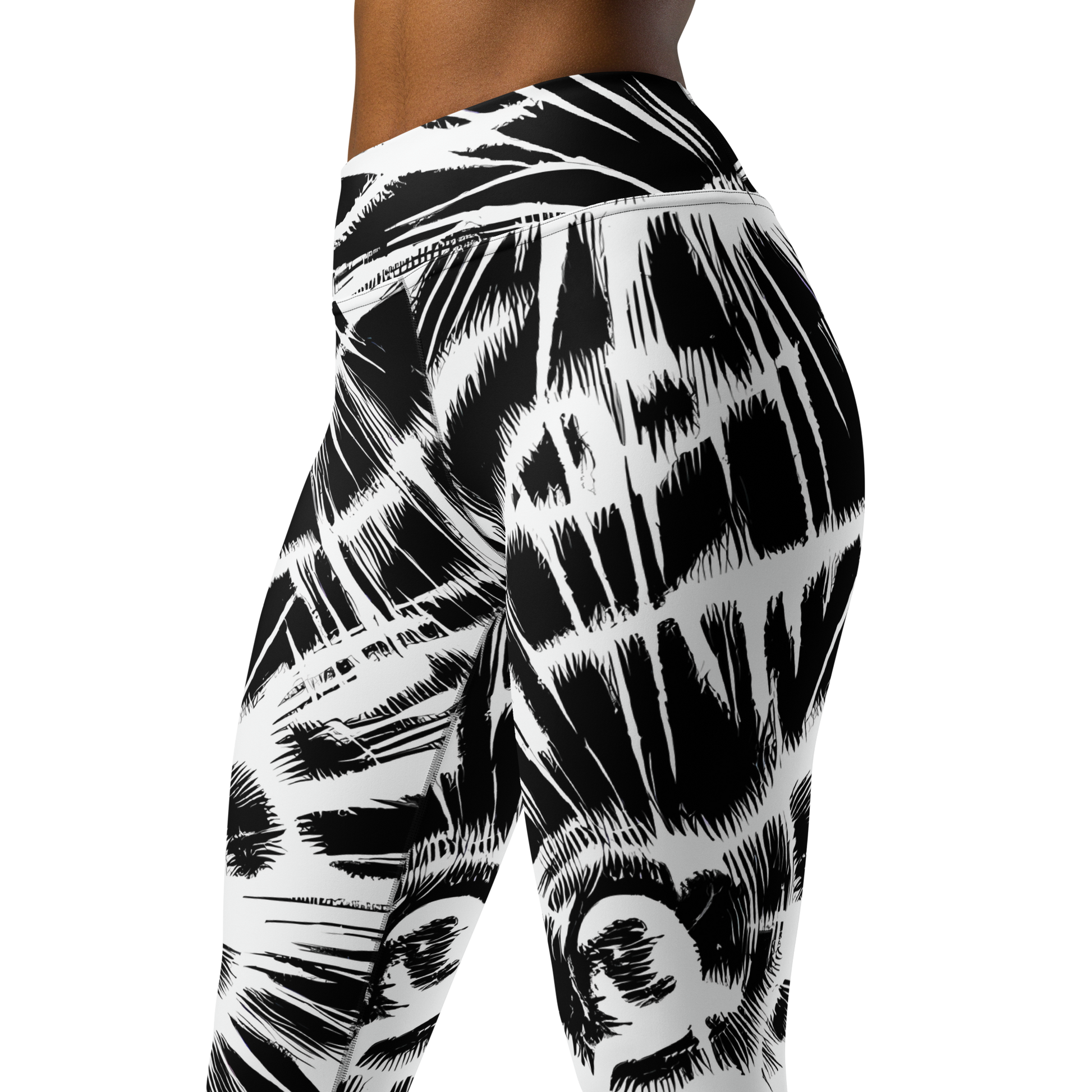 Unleash your inner storm with our "Silent Thunder" yoga leggings, where bold black and white contrasts meet dynamic, abstract designs that echo the raw energy of a tempest. These leggings are not just a piece of clothing; they’re a statement, ideal for the daring and creative individual who thrives on intensity. Flow freely in unparalleled softness and flexibility, whether you're on the mat or making waves at an urban music festival.